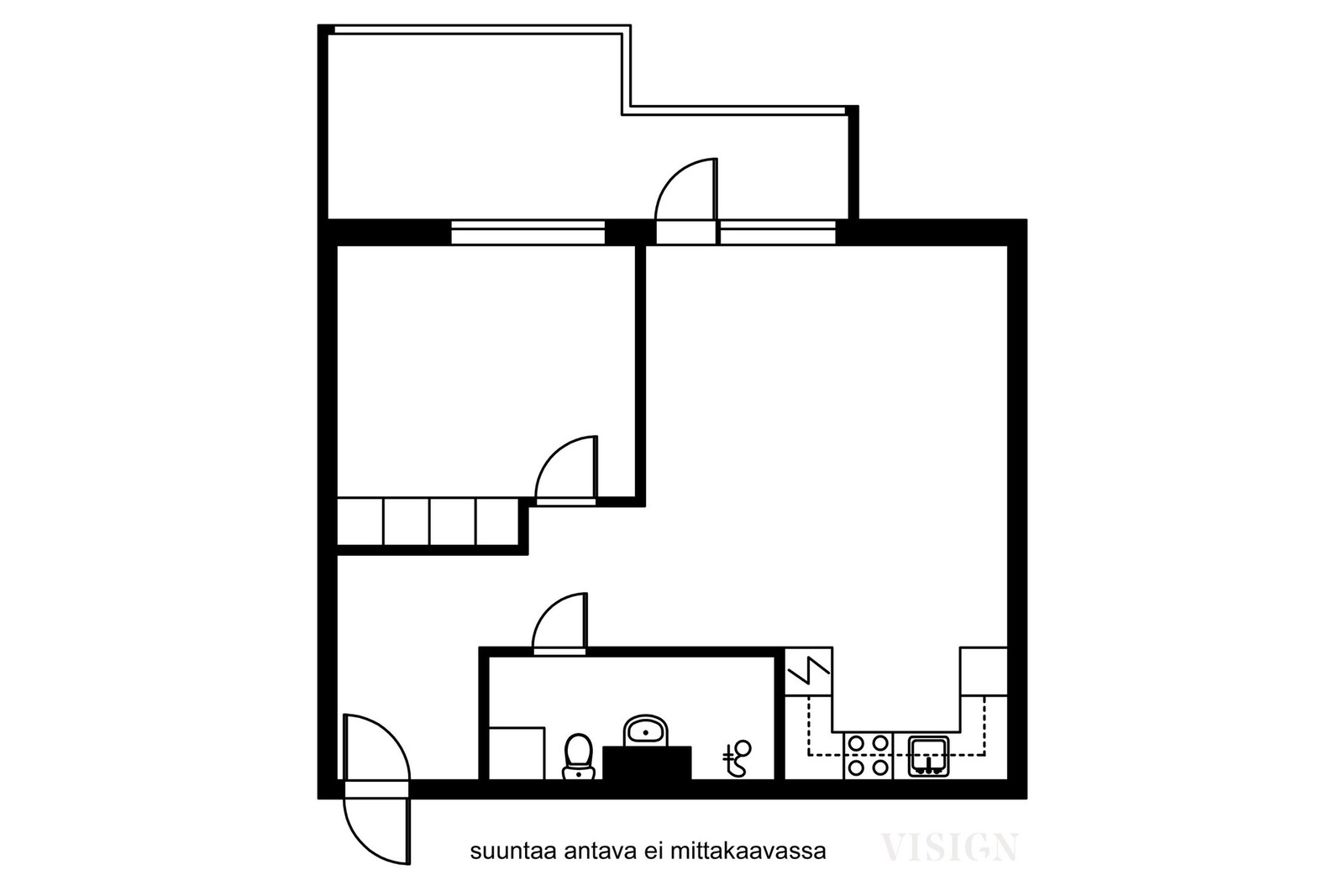 Asunto on alkuperäiskuntoinen, kylpyhuone ja keittiö vaativat päivitystä. |