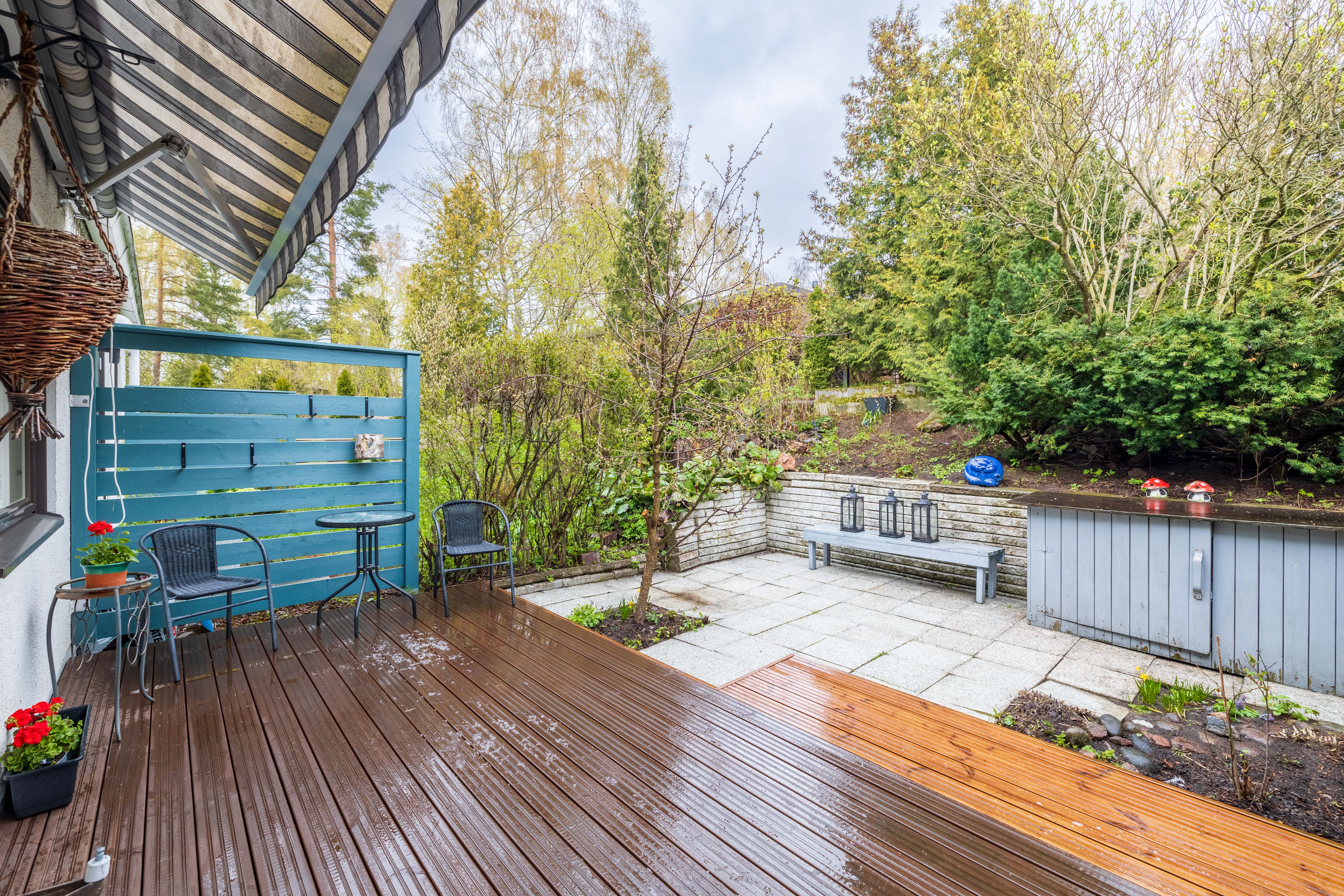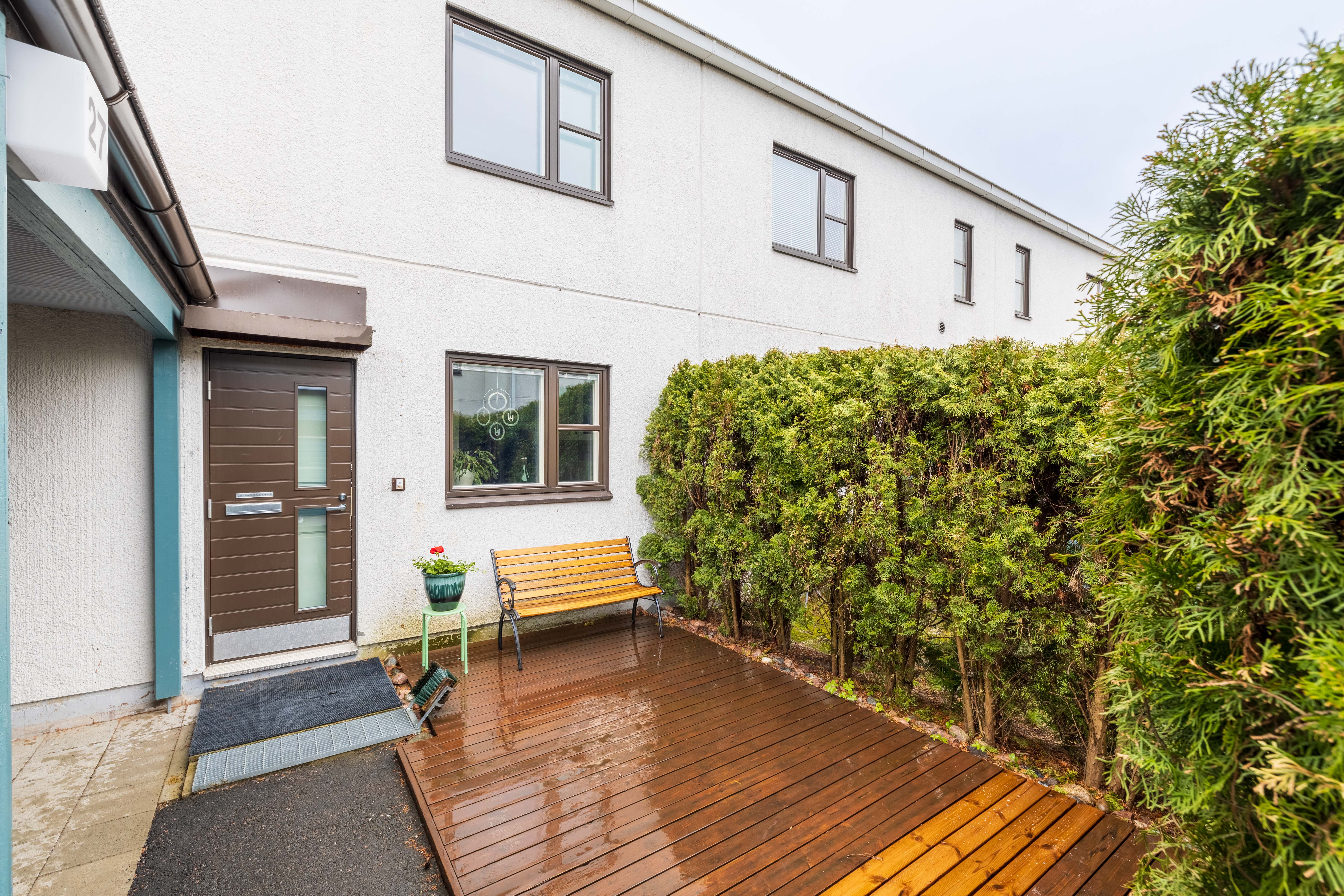 Makuuhuoneita on kaksi, ja kodin viihtyisyyttä täydentävät kolme omaa rauhoittumispaikkaa: suojaisa takapiha, viihtyisä etupiha ja lasitettu parveke yläkerrassa. Parvekkeelta avautuu itä-eteläsuunta, mikä tekee siitä ihanteellisen paikan aamukahville.