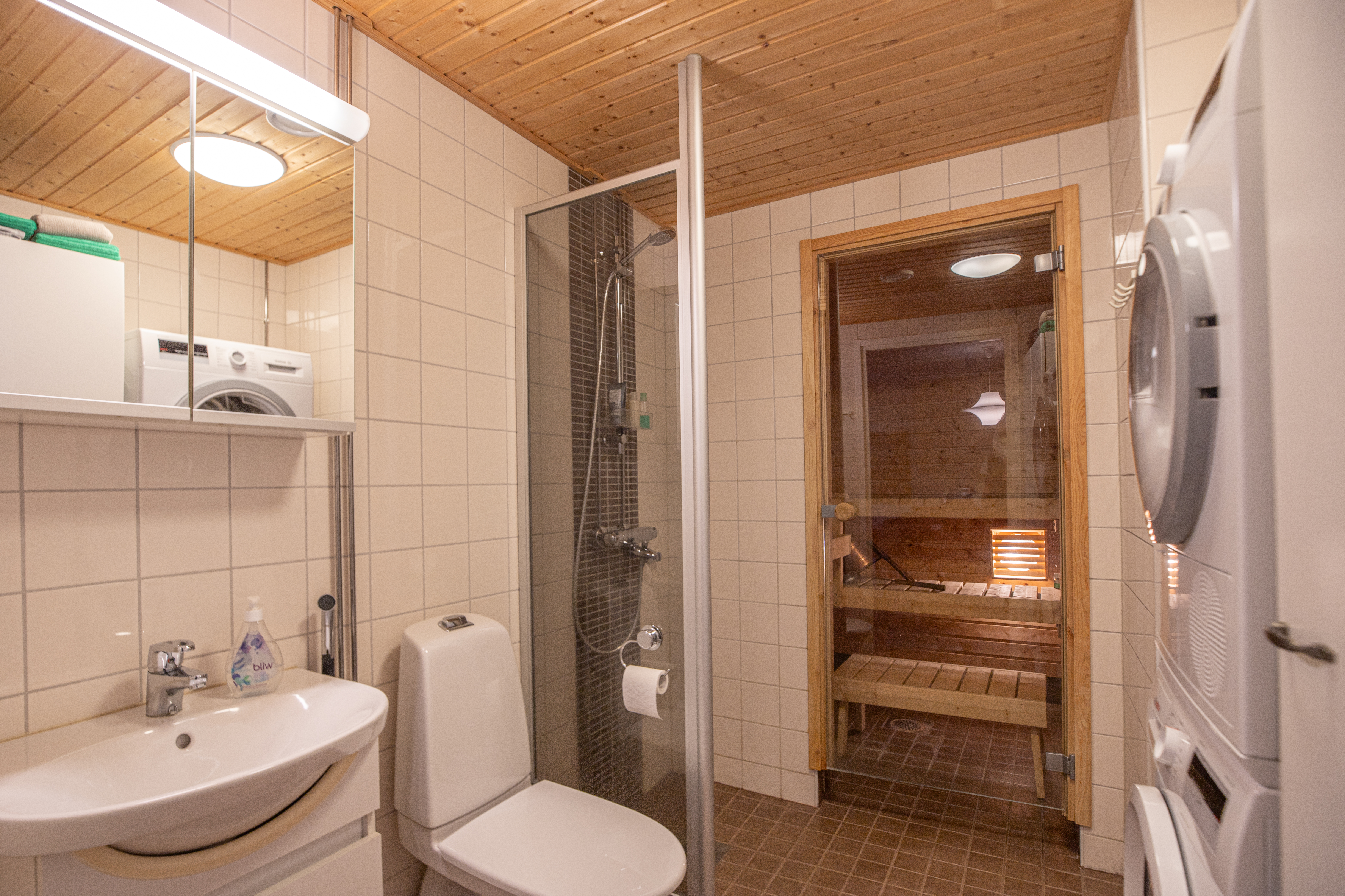 | Saunan kuvaus | Seinät (paneeli), lattiat (laatta), Sähkökiuas |