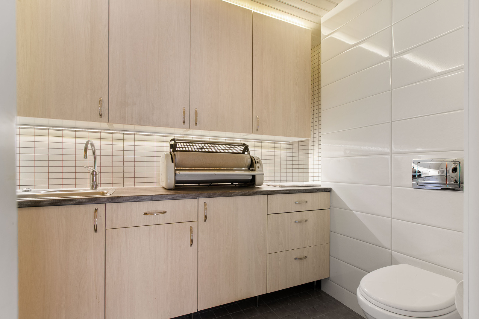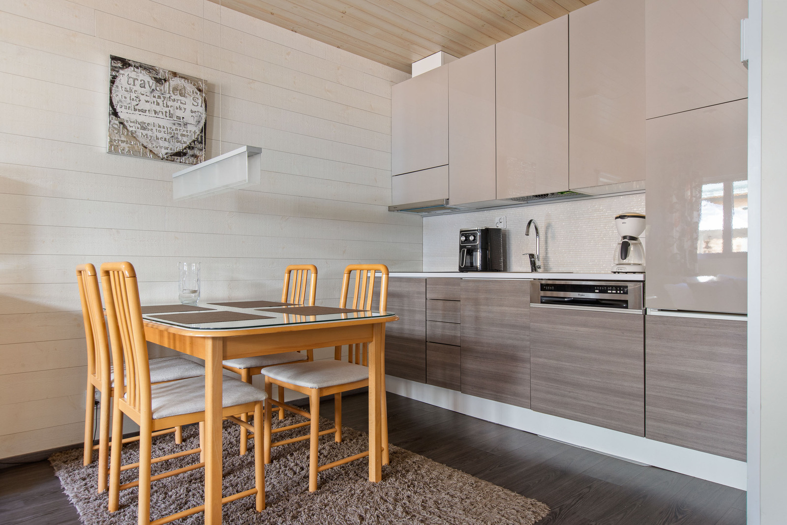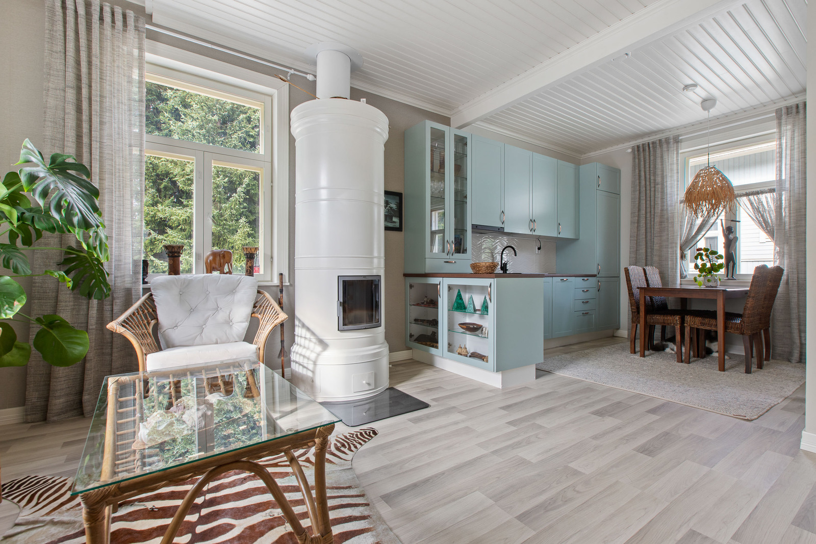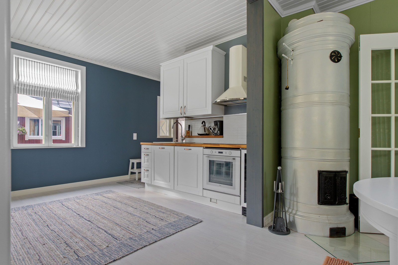 | Keittiön kuvaus | Liesi (liesitaso, erillisuuni), työtasot (puu), seinät (maali ja tapetti), lattiat (vinyylikorkki), erillisuuni, mikroaaltouuni, erillinen pakastin, astianpesukone, jääkaappi ja liesitaso, liesituuletin / hormi, viinikaappi, kiinteät valaisimet |