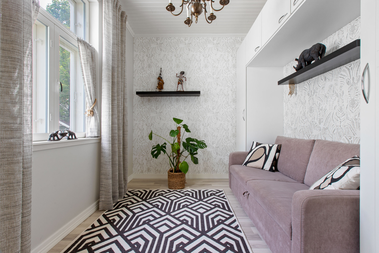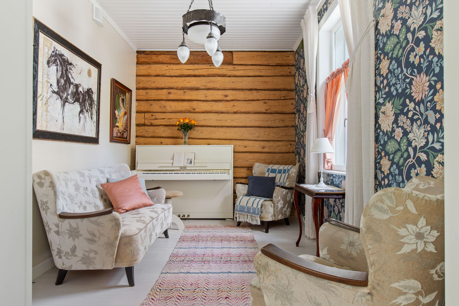 | Olohuoneen kuvaus | Seinät (puu, maali ja tapetti), lattiat (vinyylikorkki) |