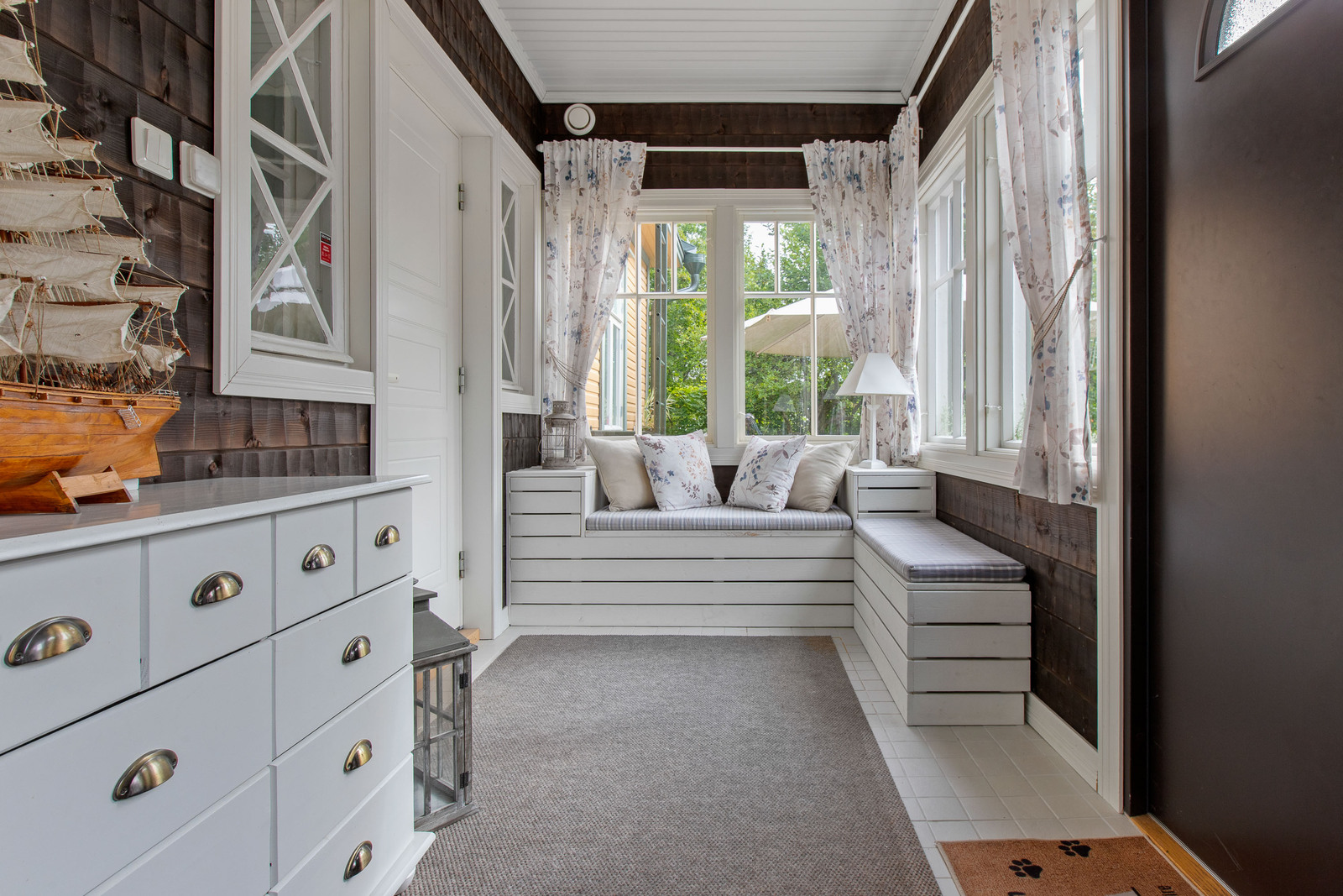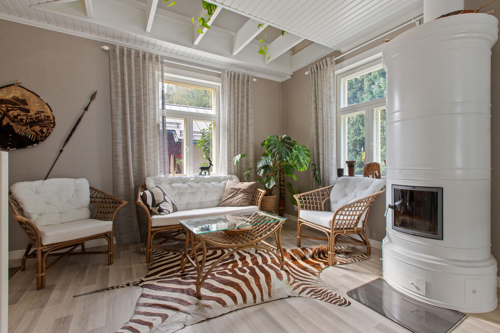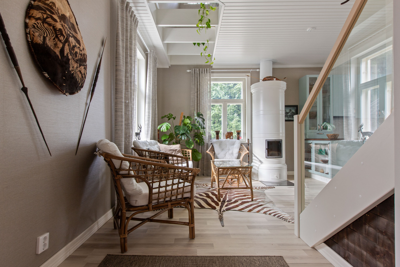 | Tilojen kuvaus | Alakerran katto antiikkipanelia, yläkerran katot maalattu valkoinen |