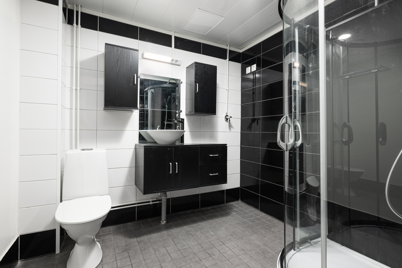 | Kylpyhuoneen kuvaus | WC-istuin, lattialämmitys, peilikaappi, suihkuseinä, pesukoneliitäntä, suihku ja kiinteät valaisimet, seinät (kaakeli), lattiat (laatta) |