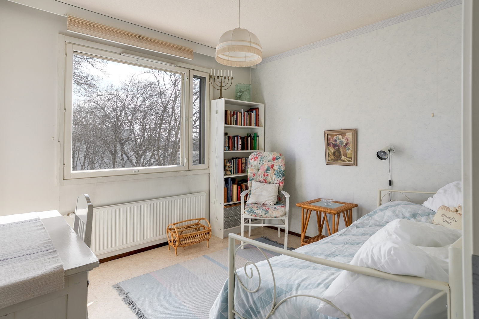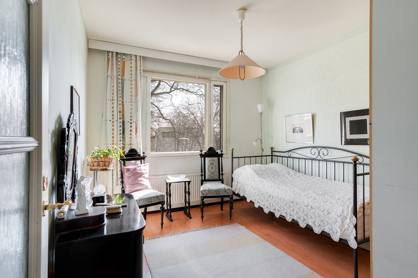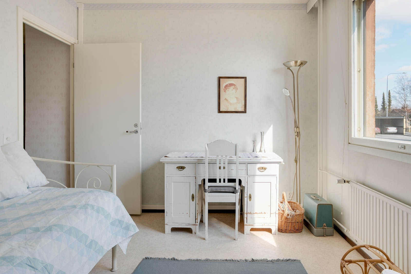 | Makuuhuoneen kuvaus | Seinät (tapetti), lattiat (laminaatti, parketti ja muovimatto) |
