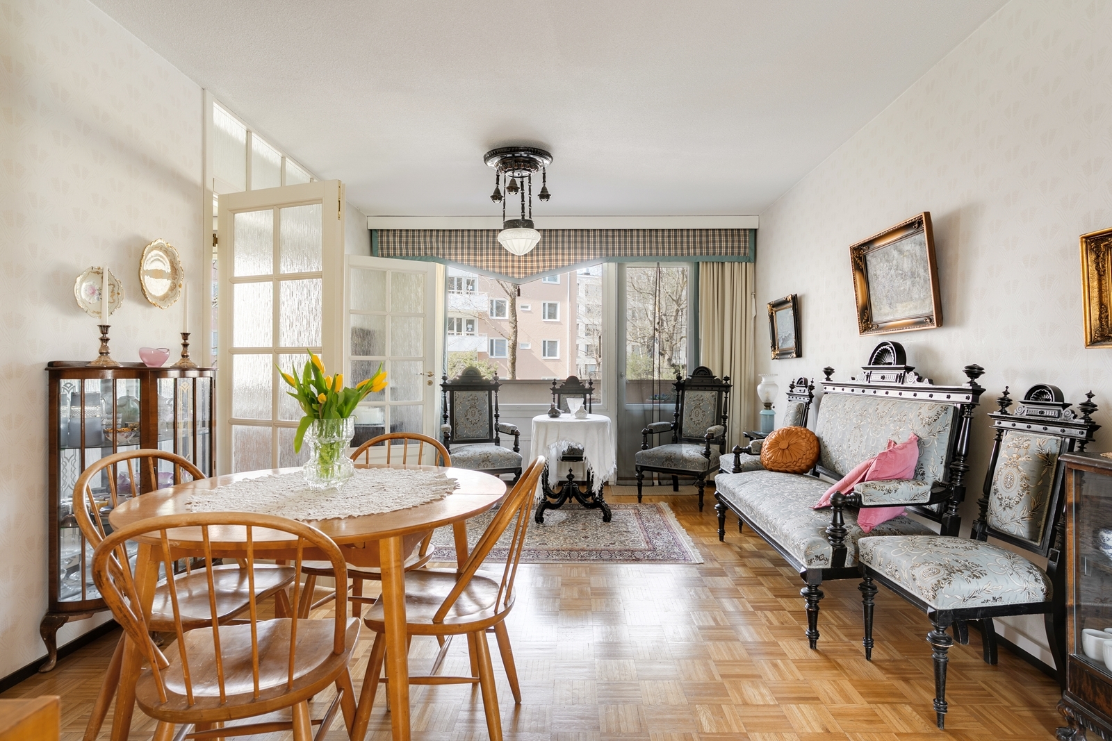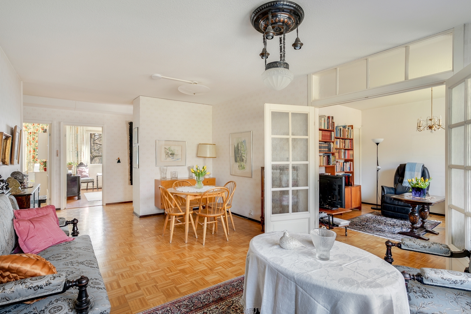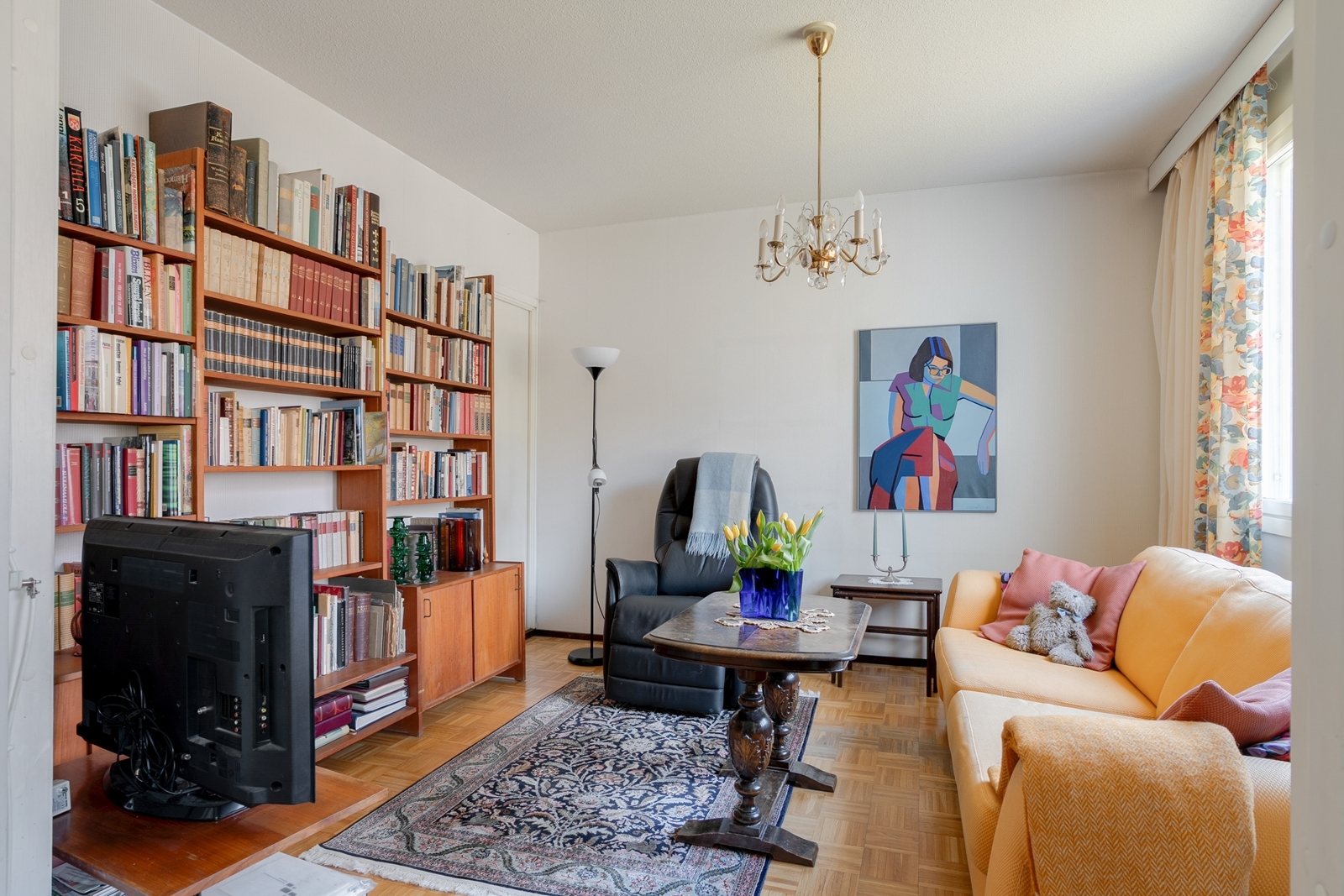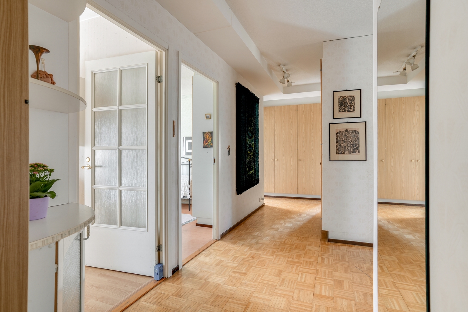 Valoisa päätyhuoneisto Hätilässä – neljä huonetta, keittiö, sauna ja kaksi parveketta