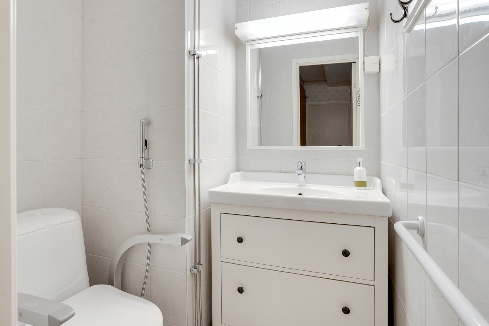 | WC-tilojen kuvaus | Bidee-suihku, peili, allaskaappi ja wc-istuin, seinät (Kaakeli), lattiat (Laatta) |