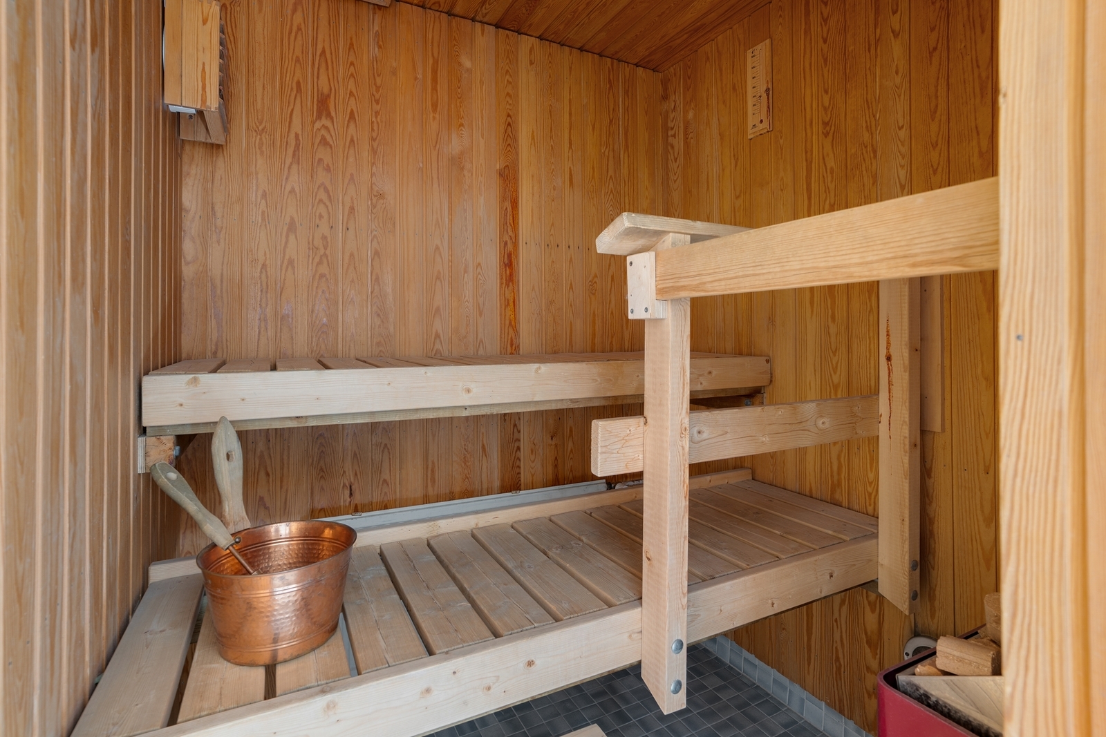 | Saunan kuvaus | Seinät (puu), lattiat (laatta), Sähkökiuas |
