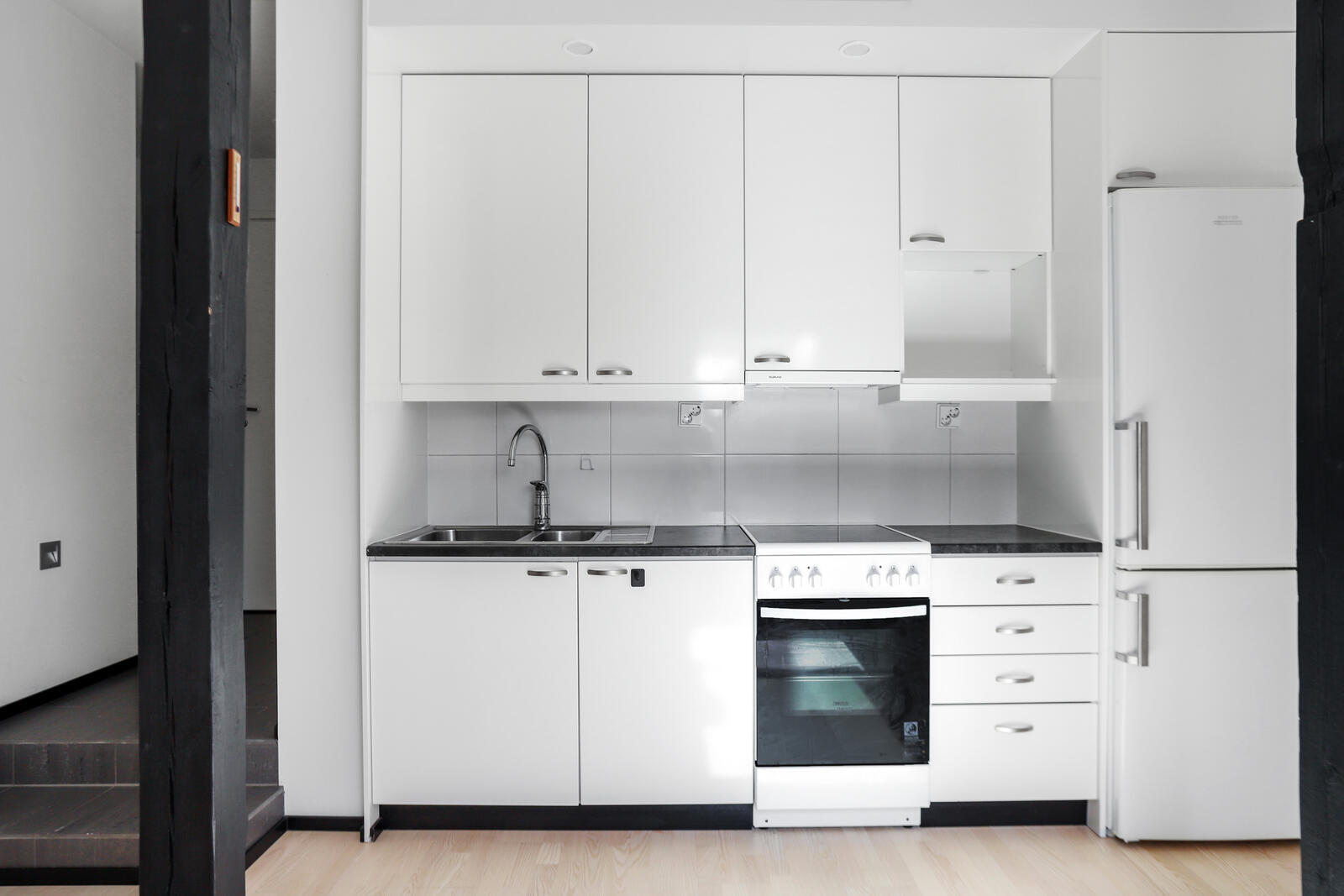 | Keittiön kuvaus | Liesi (Keraaminen liesi), seinät (maali), lattiat (parketti), jääkaappipakastin, liesituuletin ja kiinteät valaisimet |