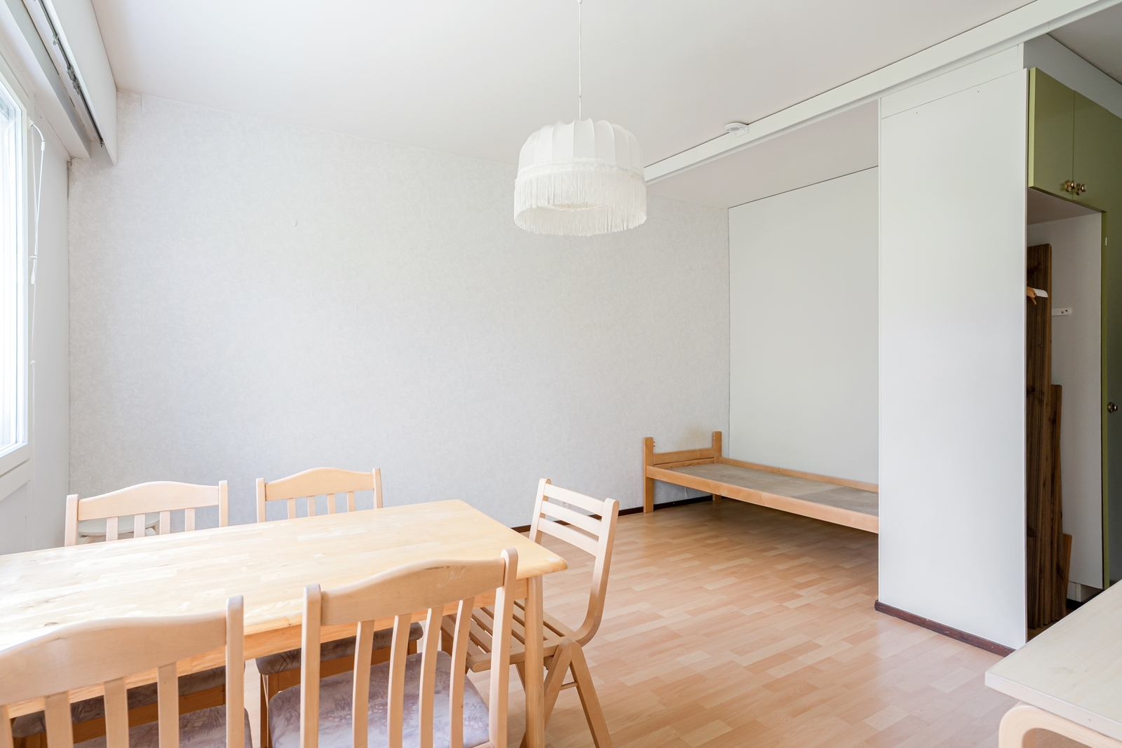 | Olohuoneen kuvaus | Seinät (maali ja tapetti), lattiat (laminaatti) |