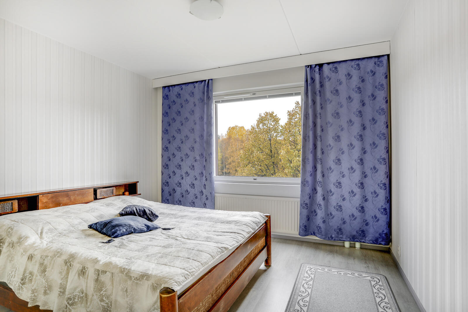 | Makuuhuoneen kuvaus | Lukumäärä: 1, 2015; vanha lattia poistettu, asennettu laminaatti, eteisen ja olohuoneen välinen seinä poistettu, seinät tapetoitu ja katto maalattu. |