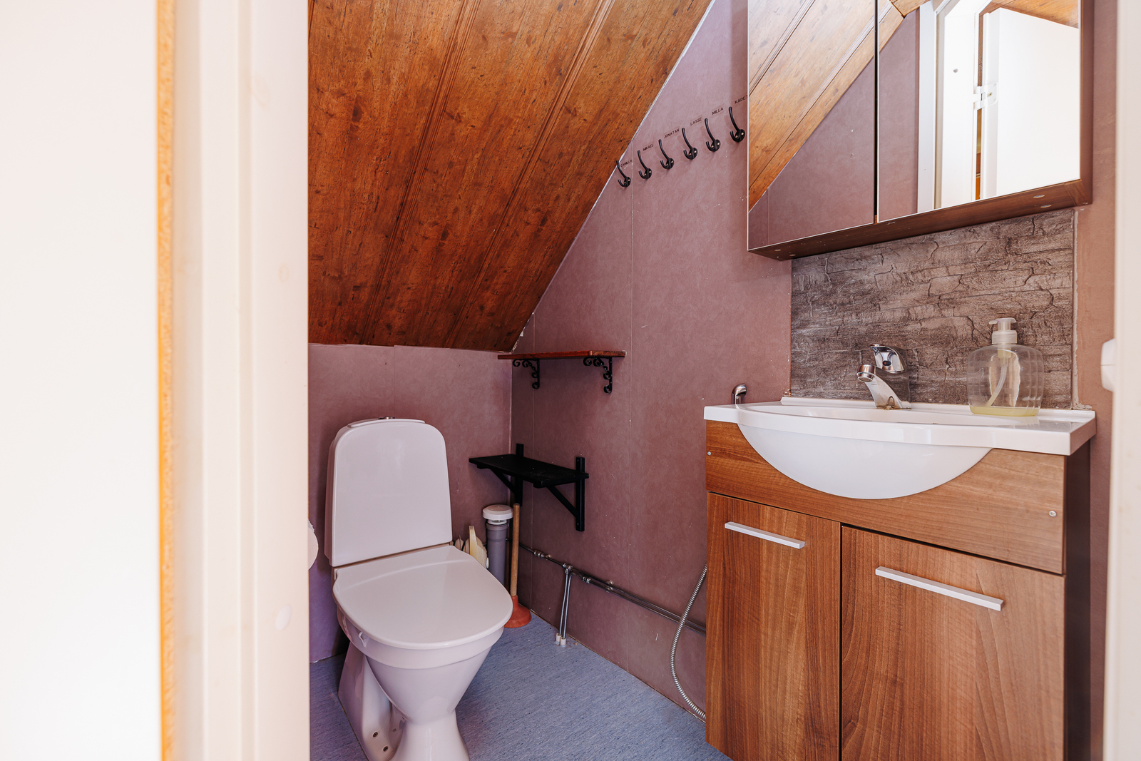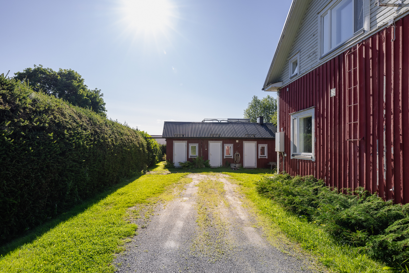 Talousrakennus. Ulkorakennuksessa lämmintä tilaa yhteensä noin 87 m², sen lisäksi neljä eri kylmää osaa, noin 60 m² yhteensä. Ulkorakennuksessa, jossa remontti kesken, vesikiertotakka. Täällä on valmis aihio saunan rakentamiselle, purkamista ei tarvitse tehdä. |