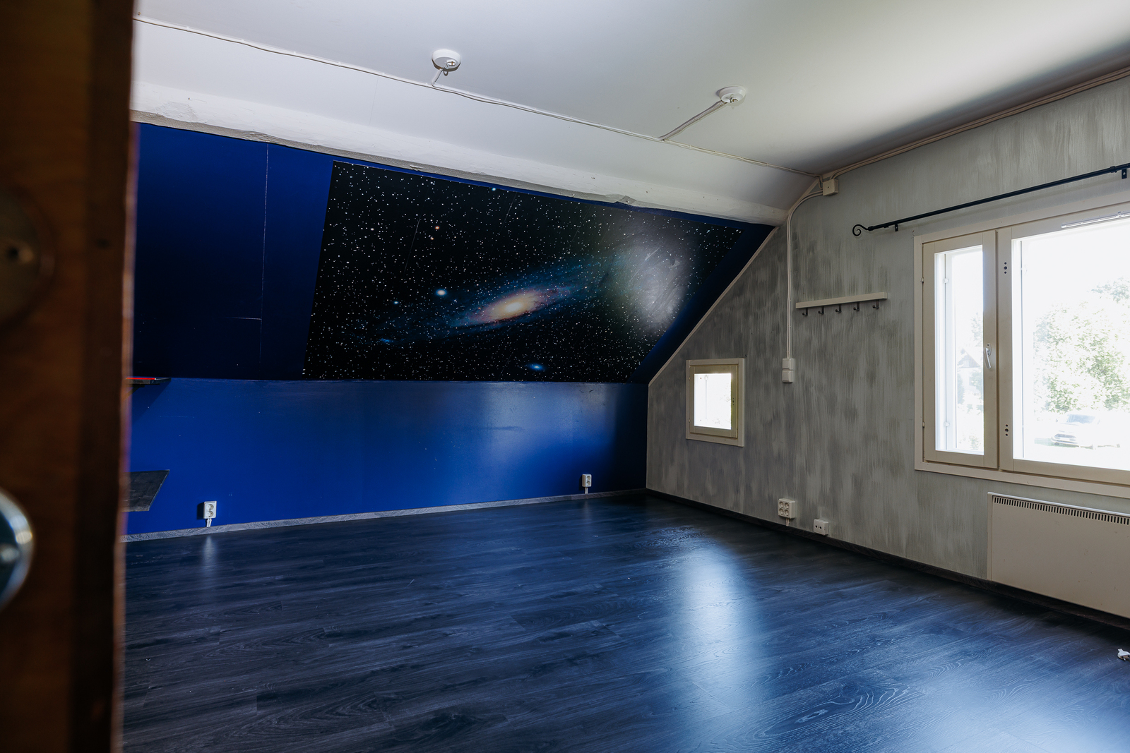 Yläkerran isoimmassa makuuhuoneessa on varaus kaminalle.