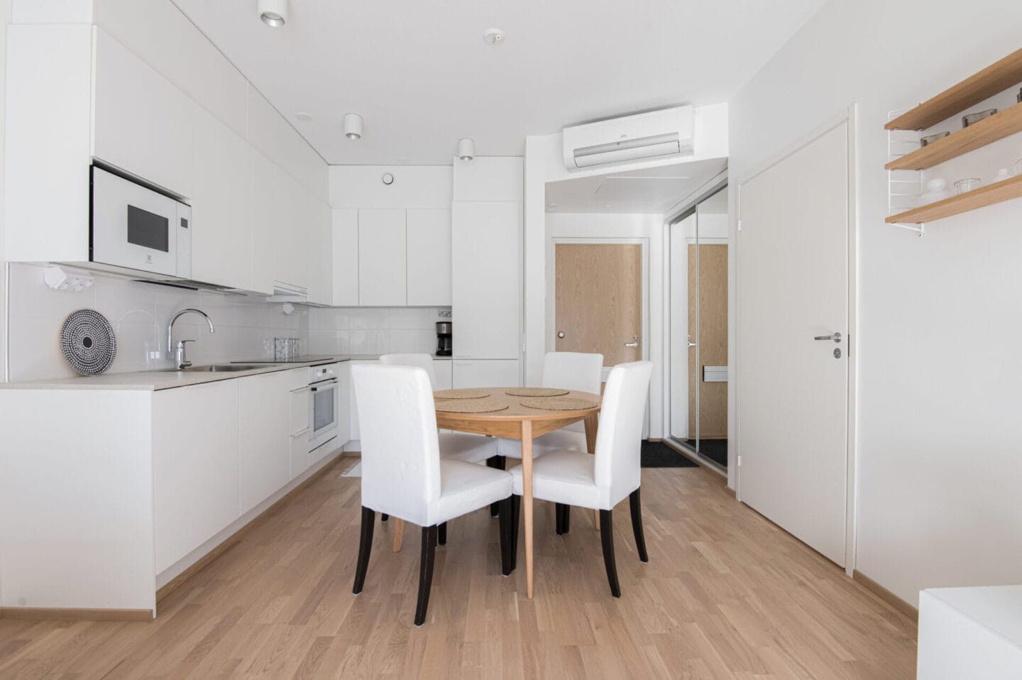 Asunnossa on tyylikkäät parkettilattiat ja tilava, lasitettu parveke, joka avautuu lounaaseen, tarjoten mukavat näkymät ja runsaasti luonnonvaloa. Keittiö on varustettu nykyaikaisilla laitteilla, kuten induktioliedellä ja erillisellä uunilla. Kylpyhuoneessa on lattialämmitys ja kaikki tarvittavat mukavuudet. Oman saunan löylyissä rentoudut kiireisen päivän jälkeen.