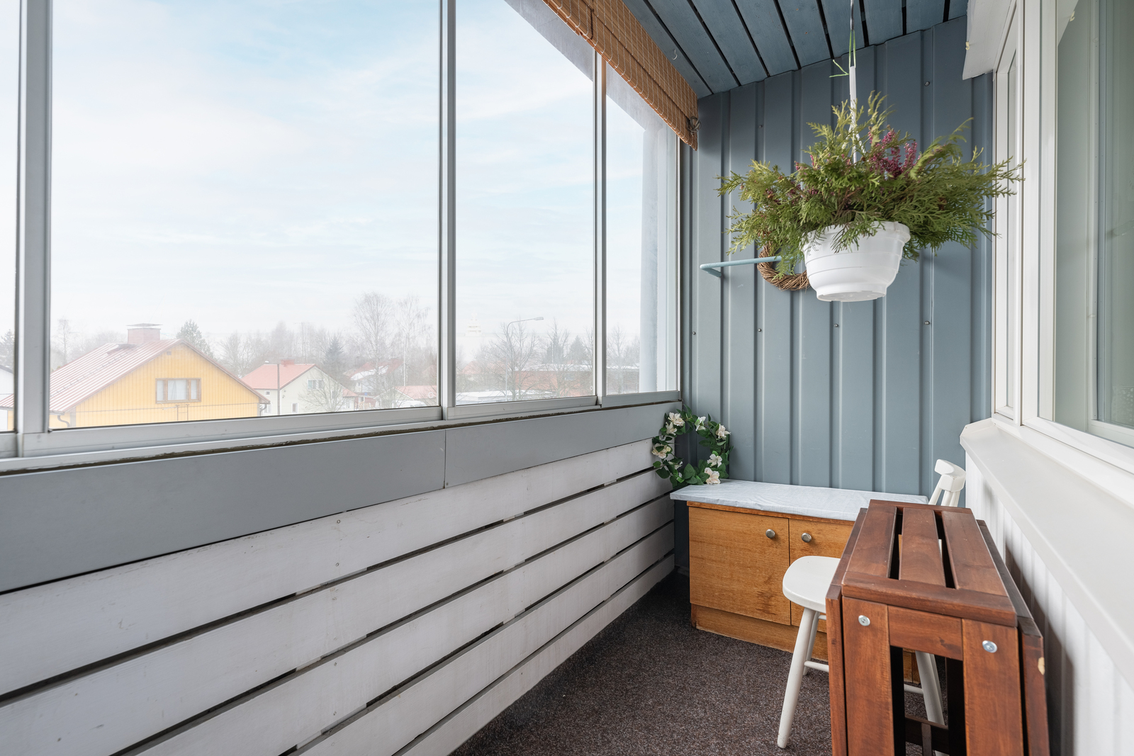 | Parvekkeen kuvaus | Lasitettu ja ulostyönnetty |