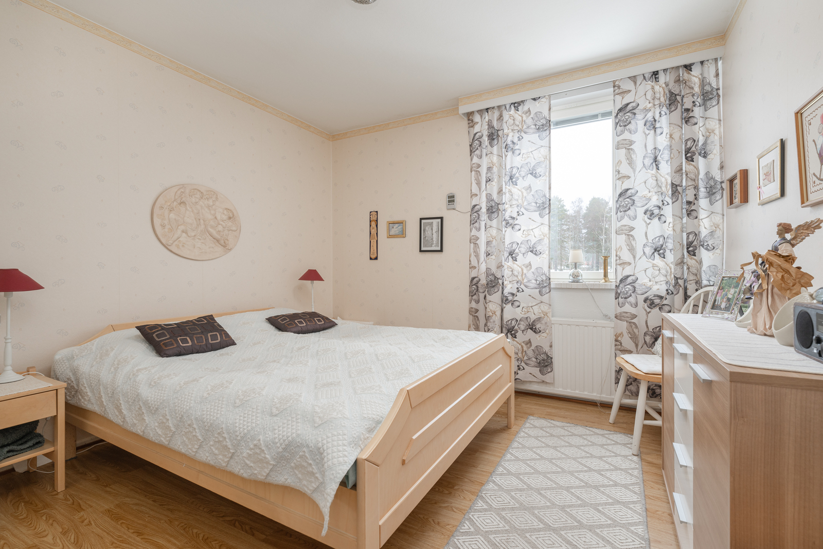 | Makuuhuoneen kuvaus | Lukumäärä: 2, seinät (tapetti), lattiat (muovimatto), Vaaleat seinät ja muovimatto lattiassa. Näkymä sisäpihalle, rauhallinen sijainti. |