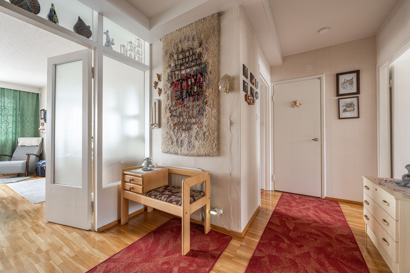 | Tilojen kuvaus | Iso ja tilava eteinen jossa paljon säilytystilaa ja tuplaovi, joka äänieristää asunnon mainiosti. |