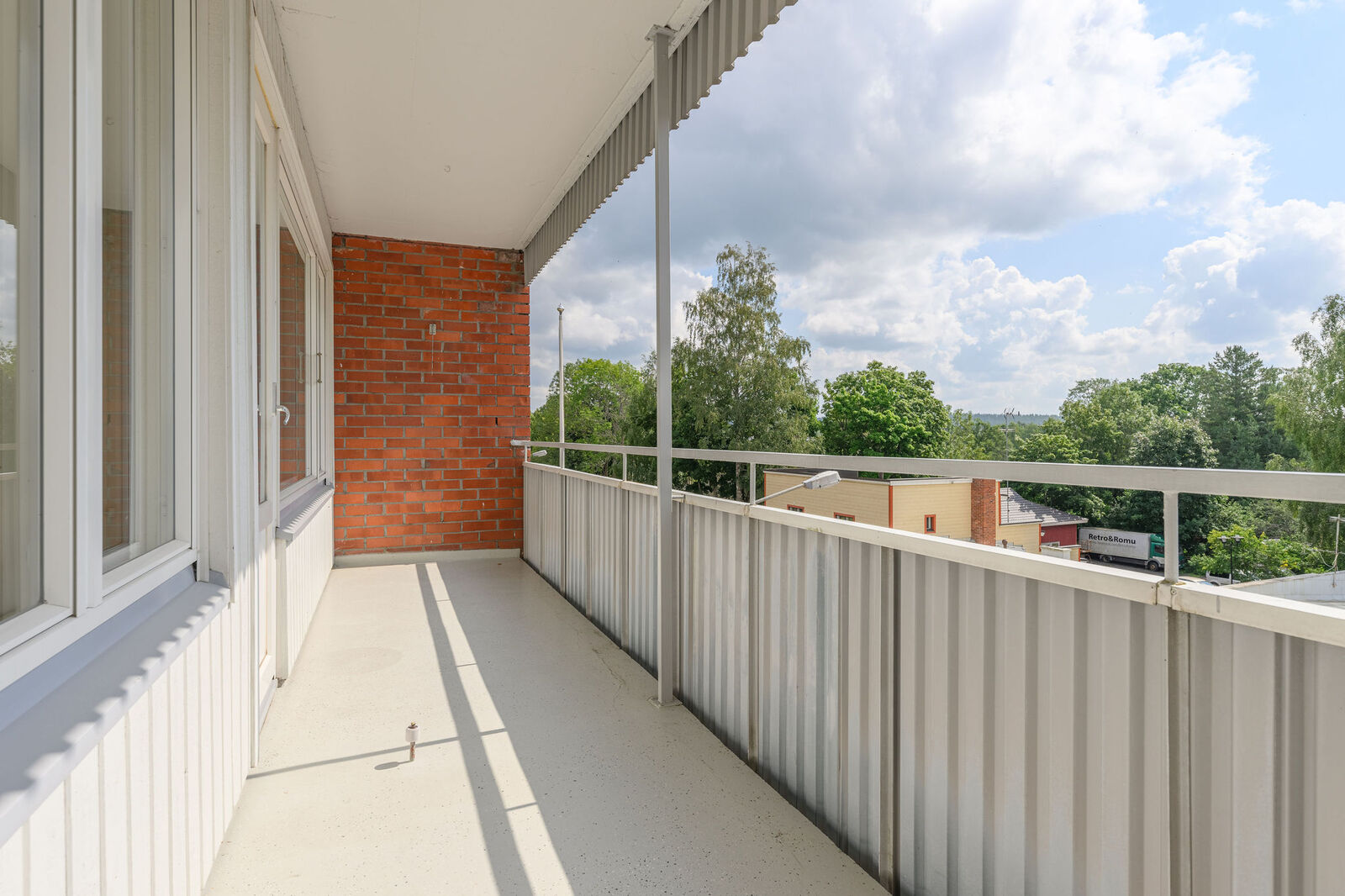 Karkkilan keskustan kerrostalossa valoisa kolmio. Kolmikerroksisen talon yläkerran pääty antaa valoa joka suunnasta. Näkymät Nyhkälänharjulle, myös yli omakotialueen avautuu avara näkymä. Tilava parveke etelän puolella. Yhtiöllä mukava “yläpiha” oleskeluun harjun puolella. Taloyhtiö hyvässä kunnossa, asiallinen remonttihistoria. Kaukolämpö. Huoneisto vapautuu nopeasti. Erinomainen asunto pienelle perheelle, myös hyvä sijoituskohde.