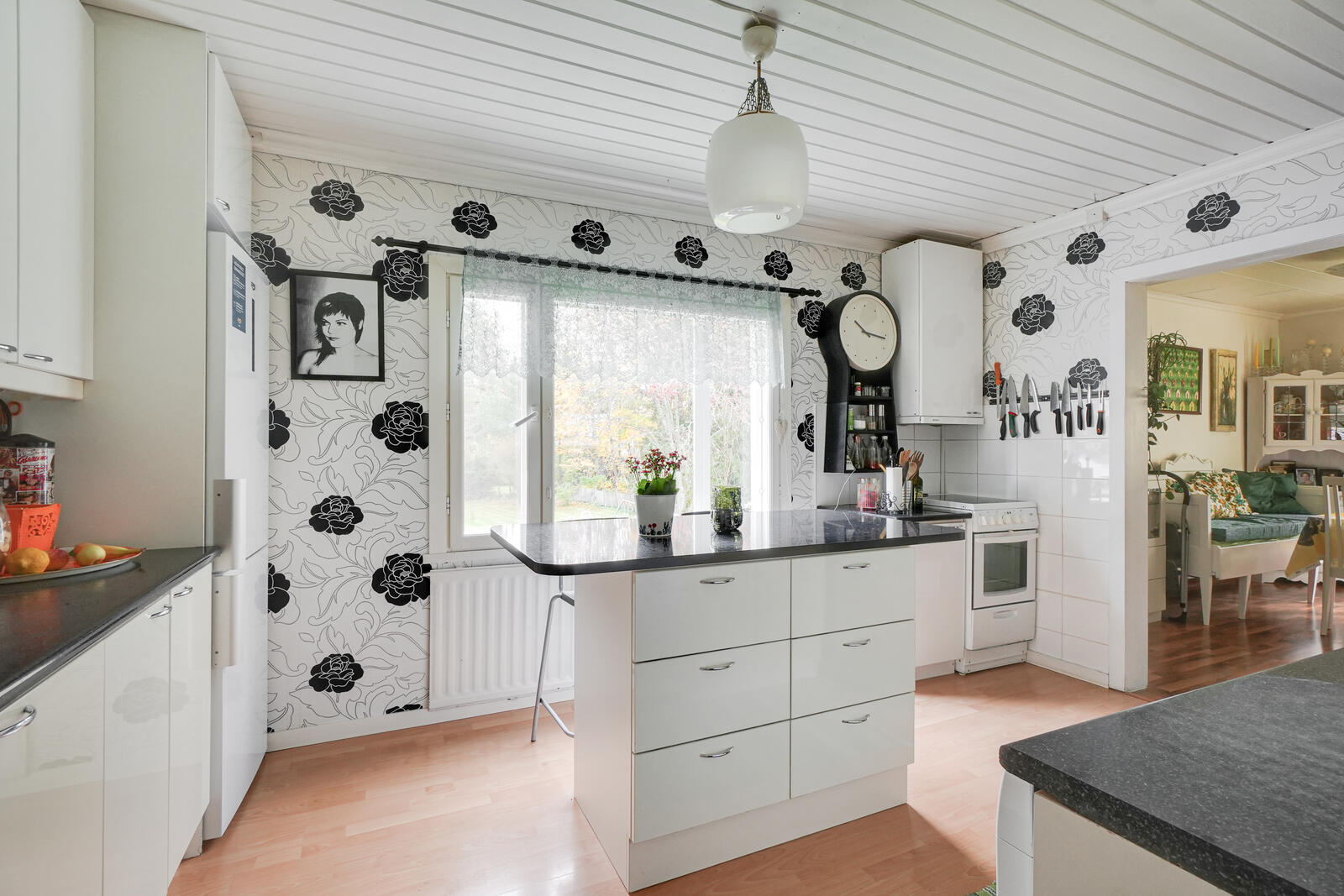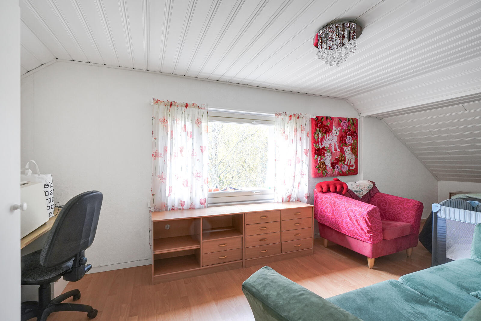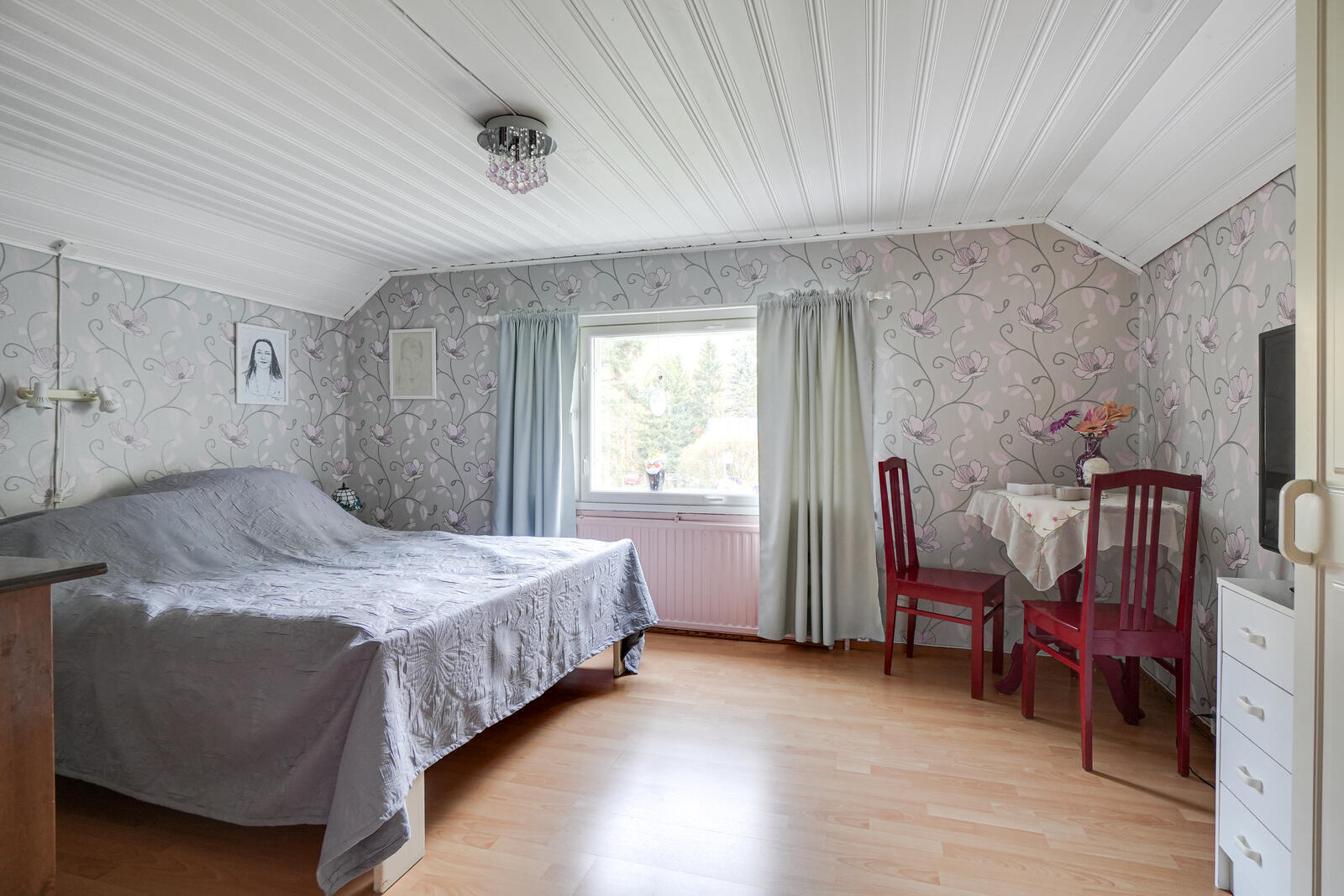 Seinät (tapetti), lattiat (laminaatti) |