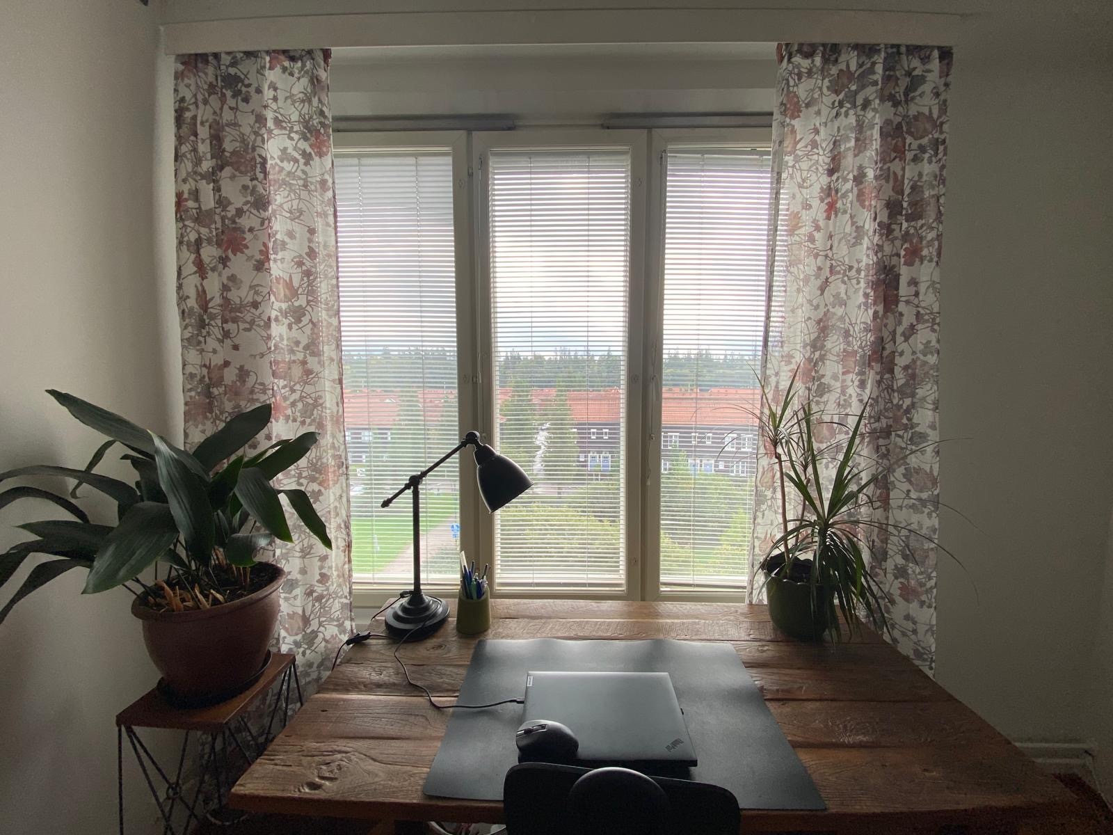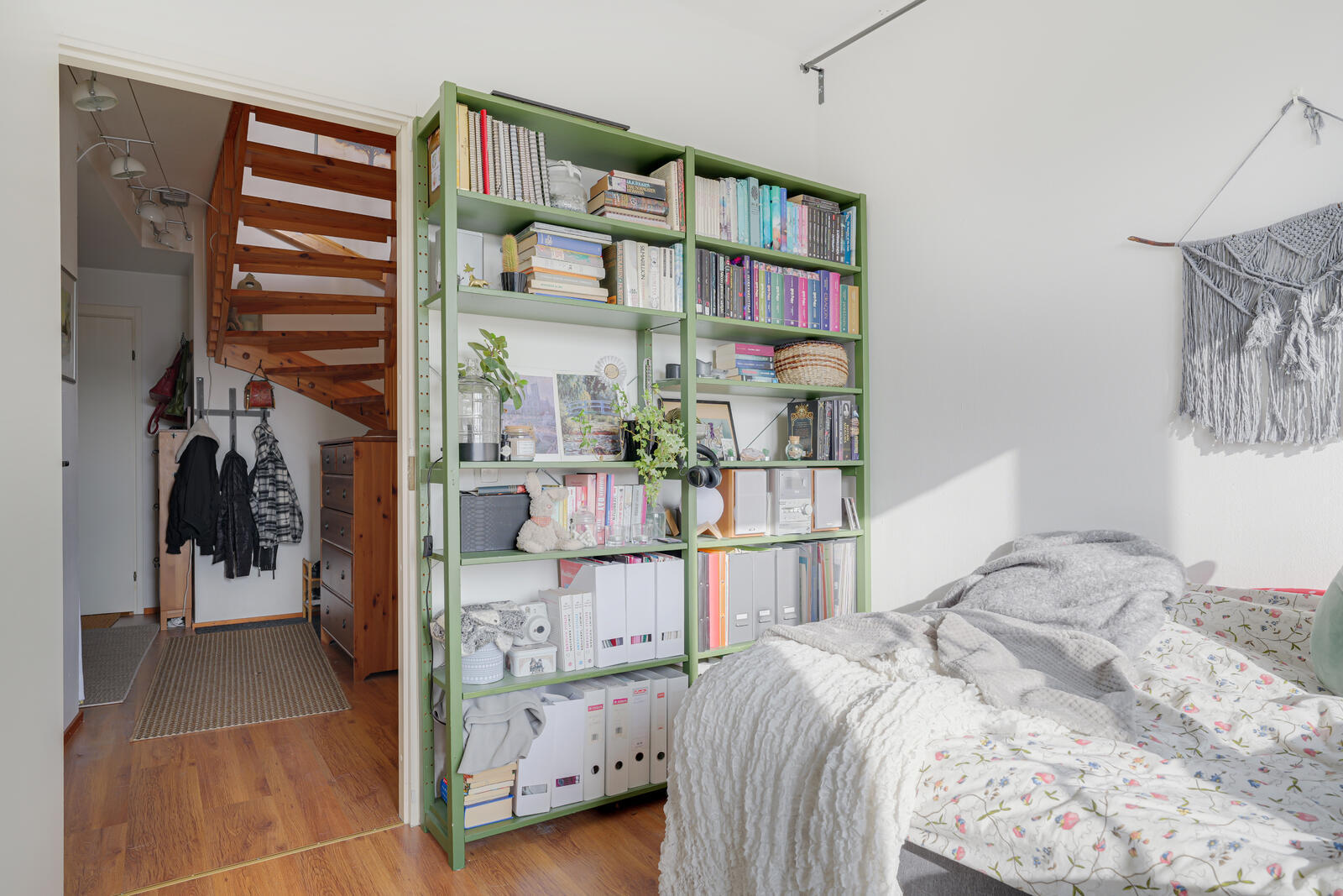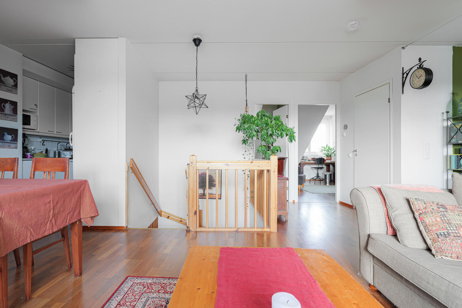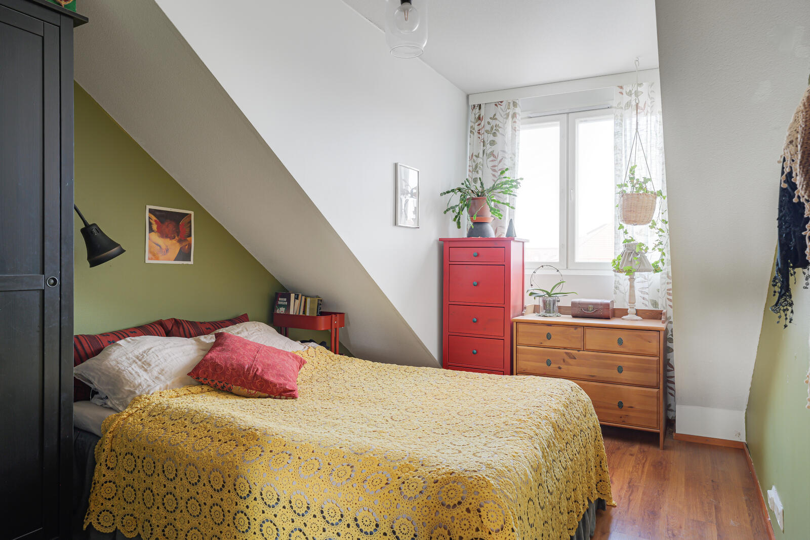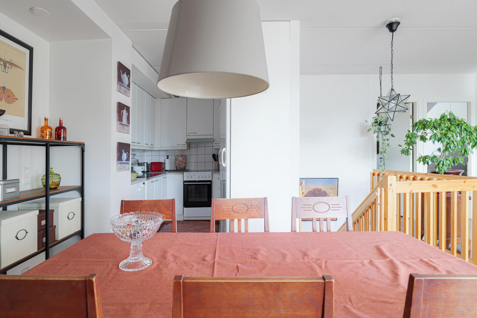 Tämä ylimmän kerroksen koti tarjoaa harvinaista arjen luksusta kahdessa tasossa. Persoonalliset vinokatot ja lasitettu parveke tekevät kokonaisuudesta ainutlaatuisen. Parvekkeelta avautuvat maisemat rauhoittavat, kuin näkymä suoraan mielenmaisemaan.