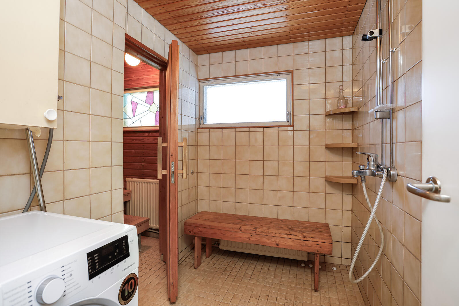 Suihku, pesukoneliitäntä ja kiinteät valaisimet, seinät (kaakeli), lattiat (laatta) |