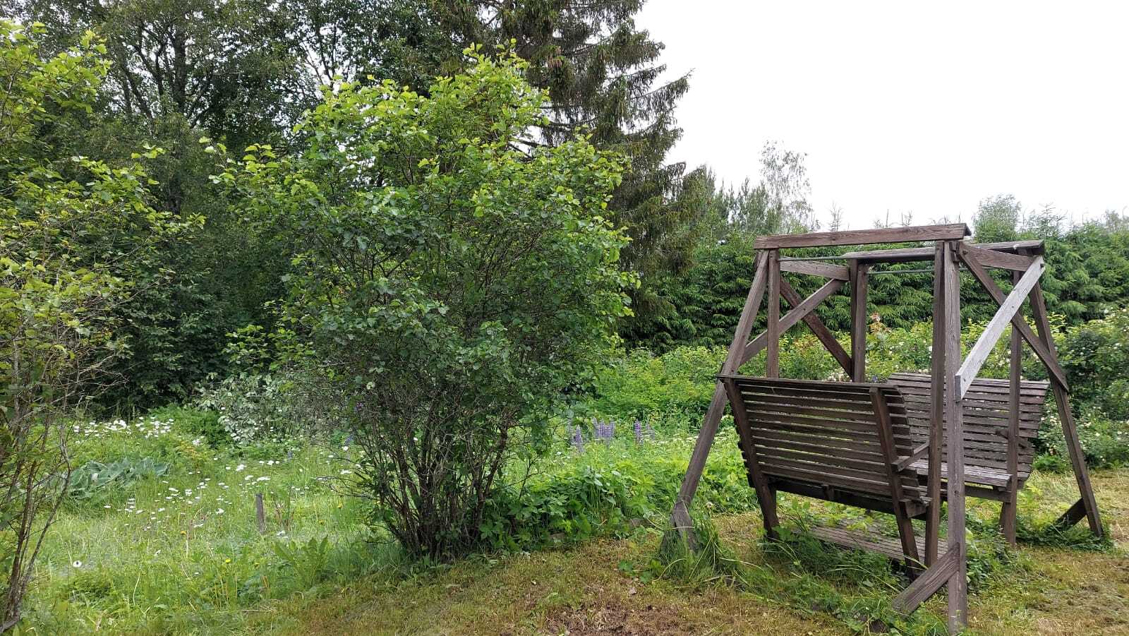 Leikkimökki, pihakeinu, lumikola, lumentyönnin.