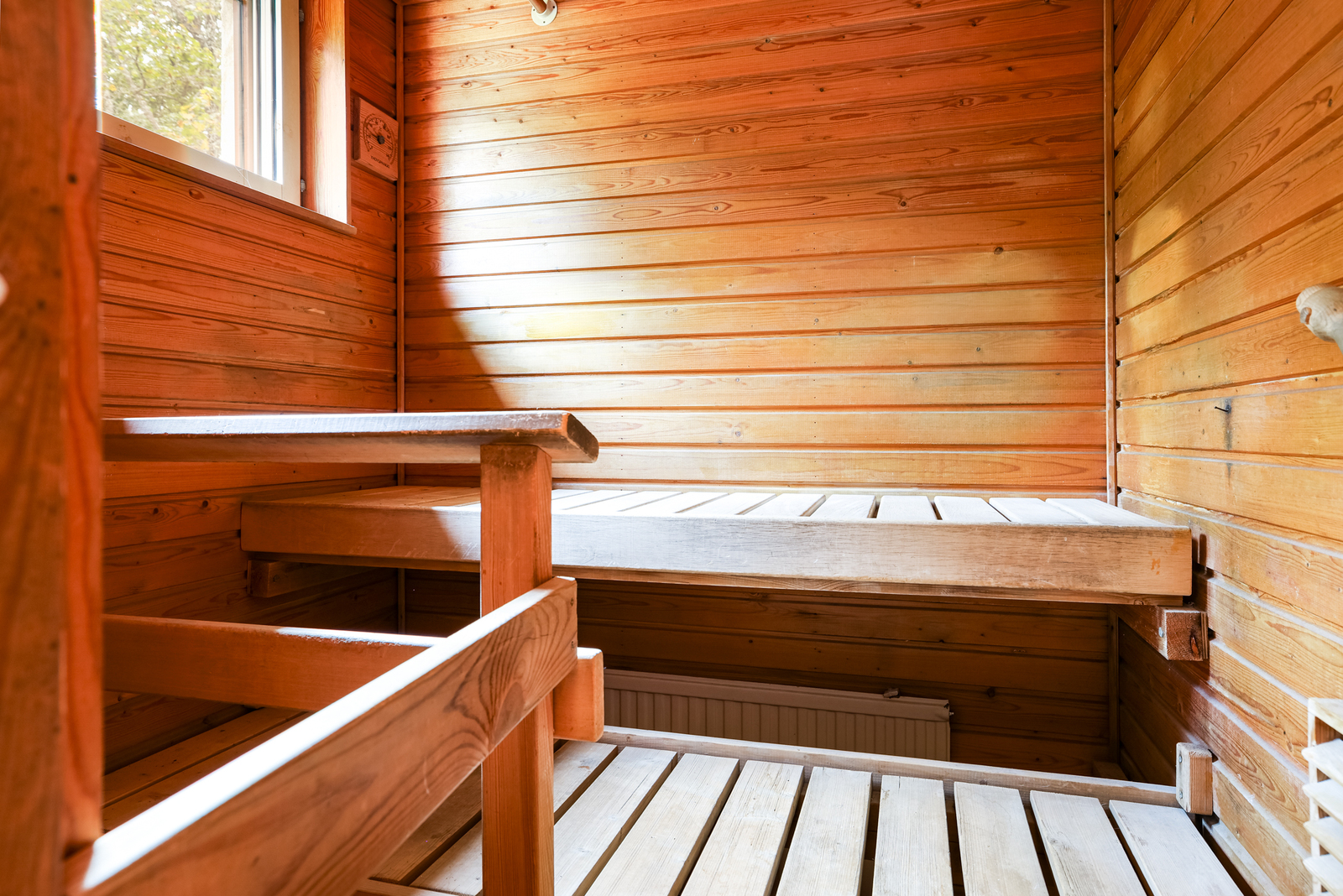| Saunan kuvaus | Seinät (puu), lattiat (muovi), Sähkökiuas |