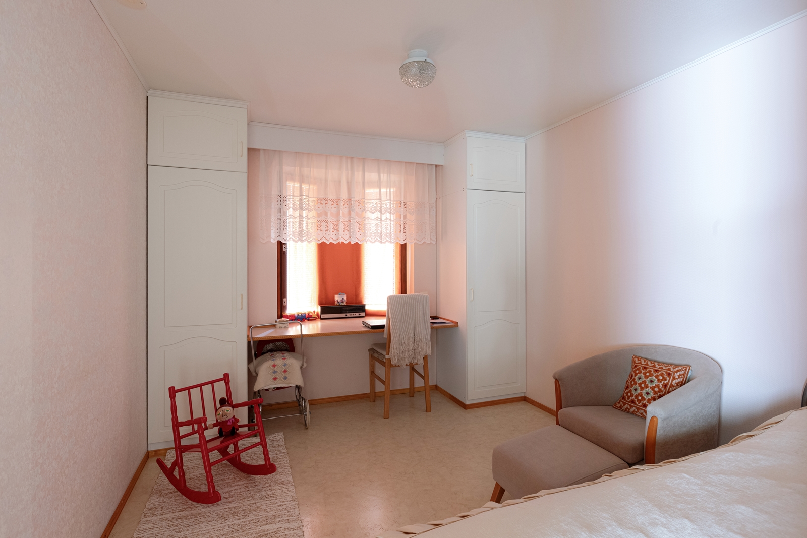 | Makuuhuoneen kuvaus | Lukumäärä: 3, lattiat (laminaatti ja muovimatto), Päämakuuhuoneessa lattiamateriaali laminaatti ja kahdessa muussa muovimatto(ei liimattu) |