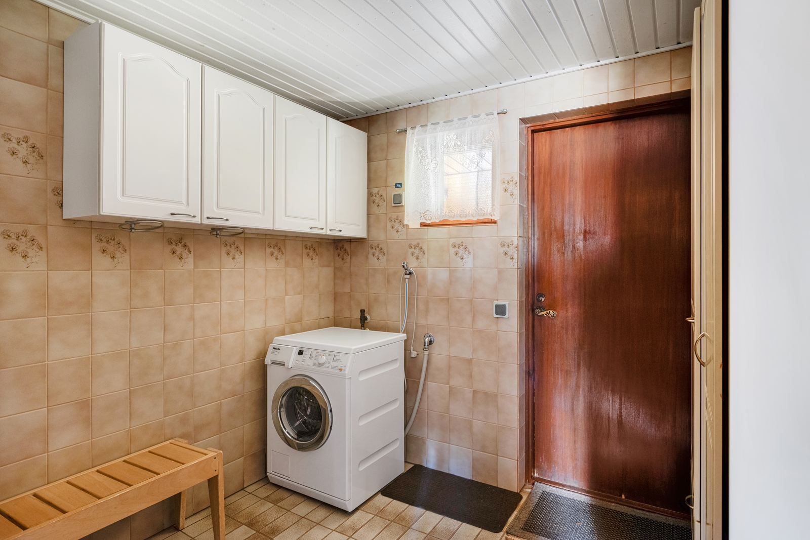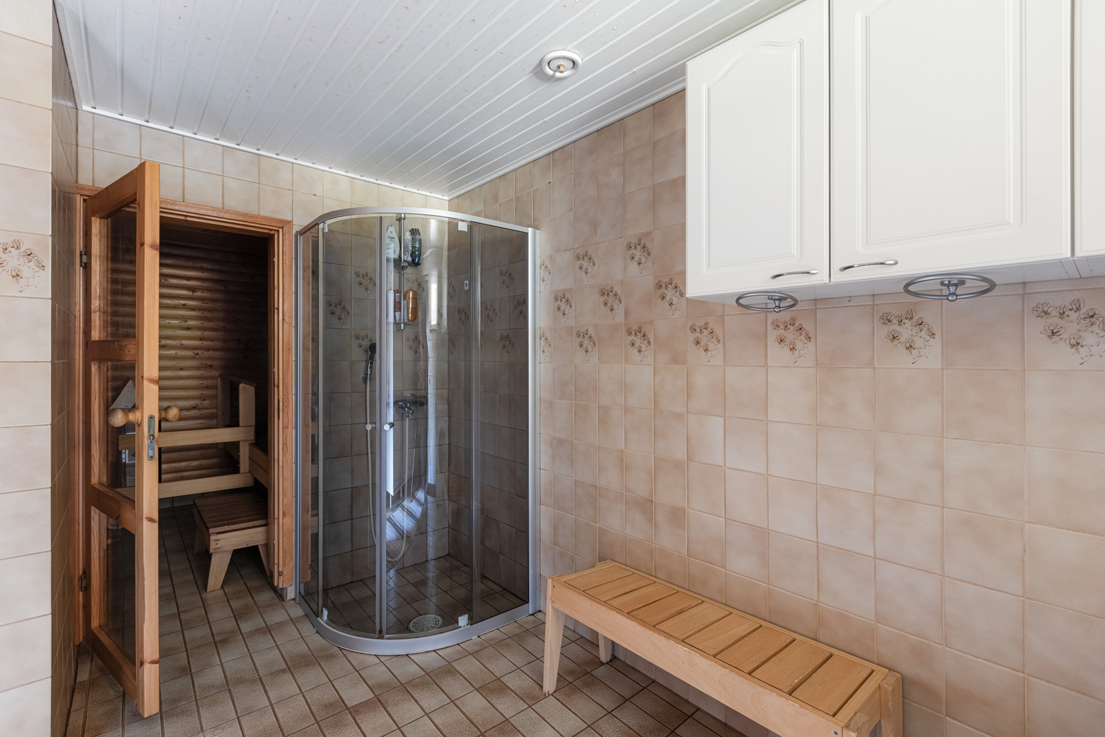 | Saunan kuvaus | Seinät (paneeli), lattiat (laatta), Sähkökiuas |