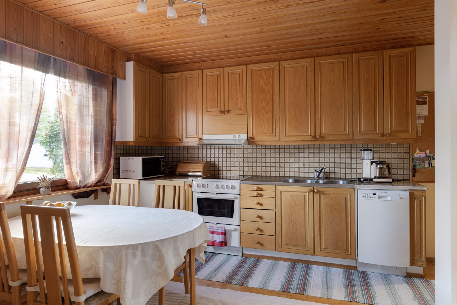 | Keittiön kuvaus | Liesi (Keraaminen liesi), lattiat (parketti), liesituuletin (hormiin), astianpesukone ja jääkaappi |