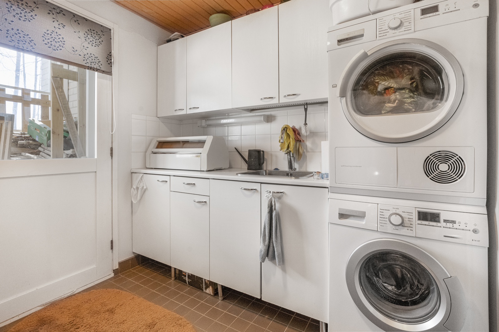 | Kodinhoitohuoneen kuvaus | Pesukoneliitäntä, lattiat (laatta), seinät (maali ja kaakeli) |