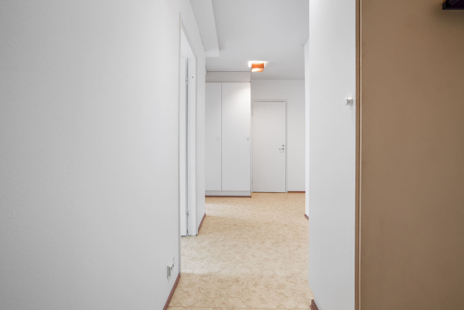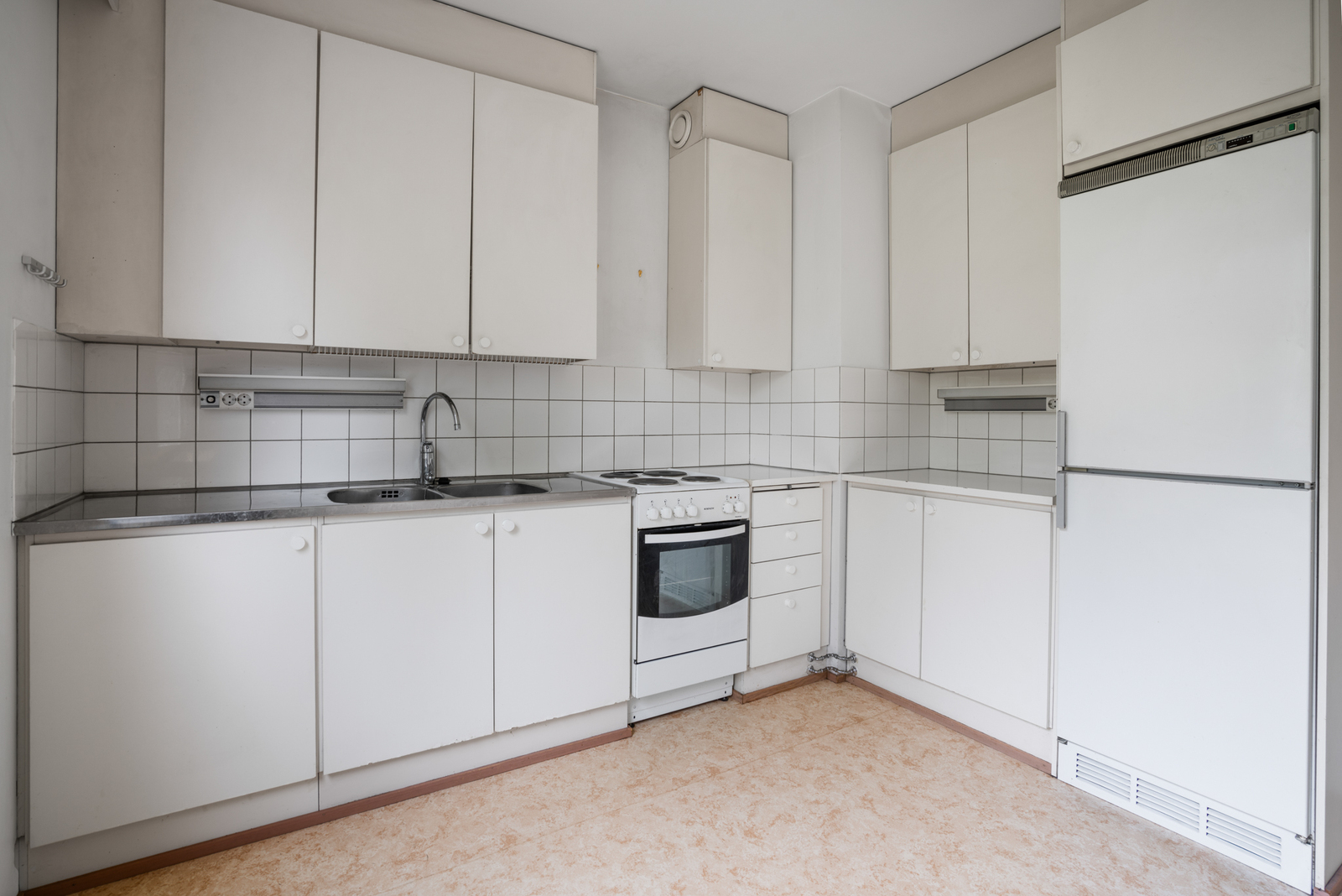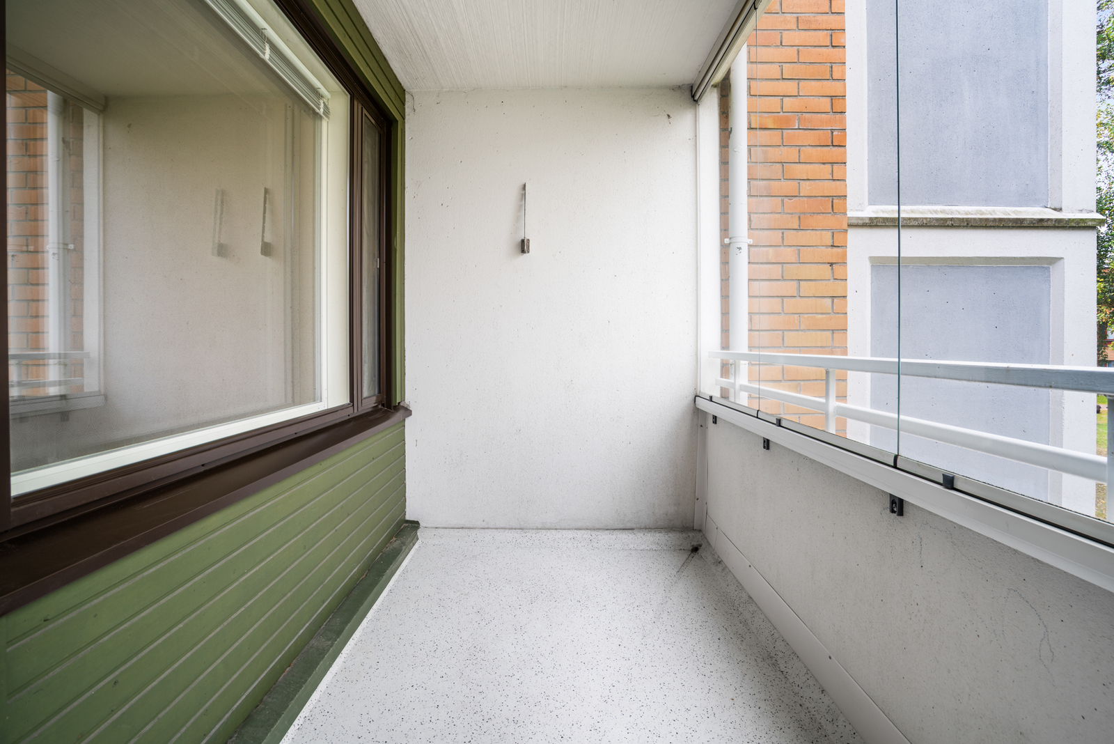 Keittiö ja pesuhuone alkuperäiskuntoiset. Tilavat huoneet. Lasitettu parveke piha-alueelle lännen suuntaan.