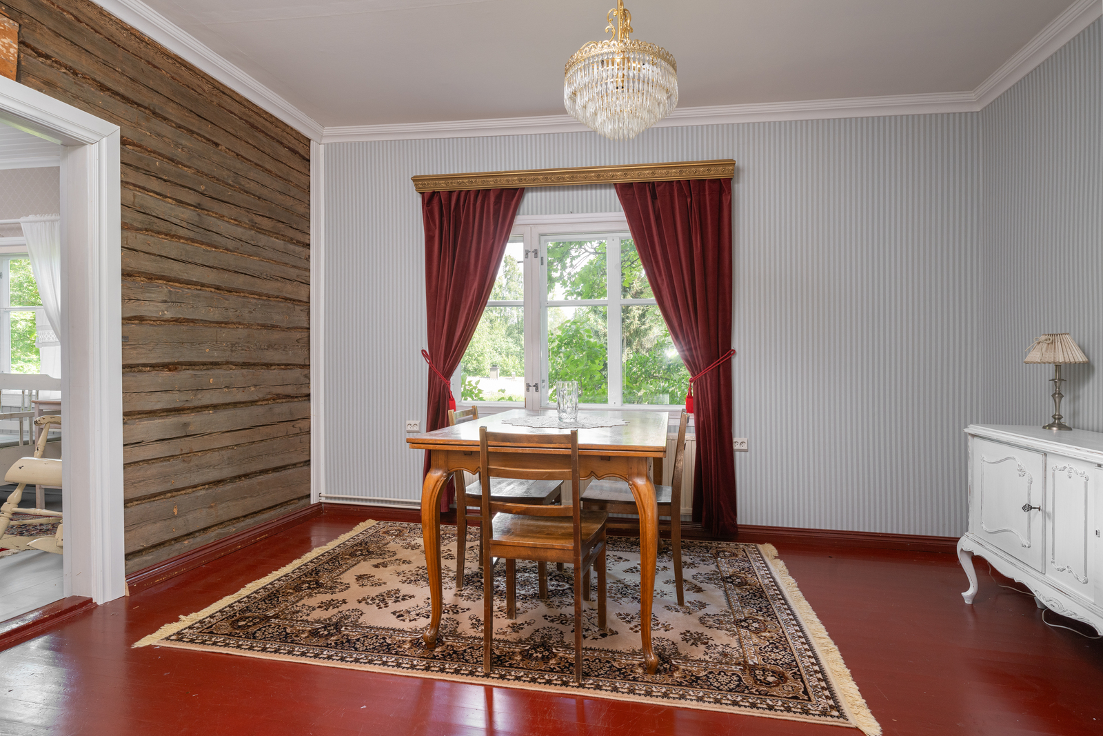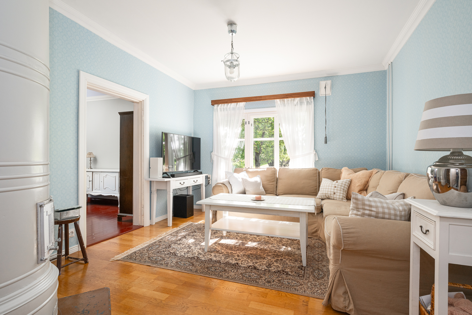 | Olohuoneen kuvaus | Seinät (tapetti), lattiat (parketti) |