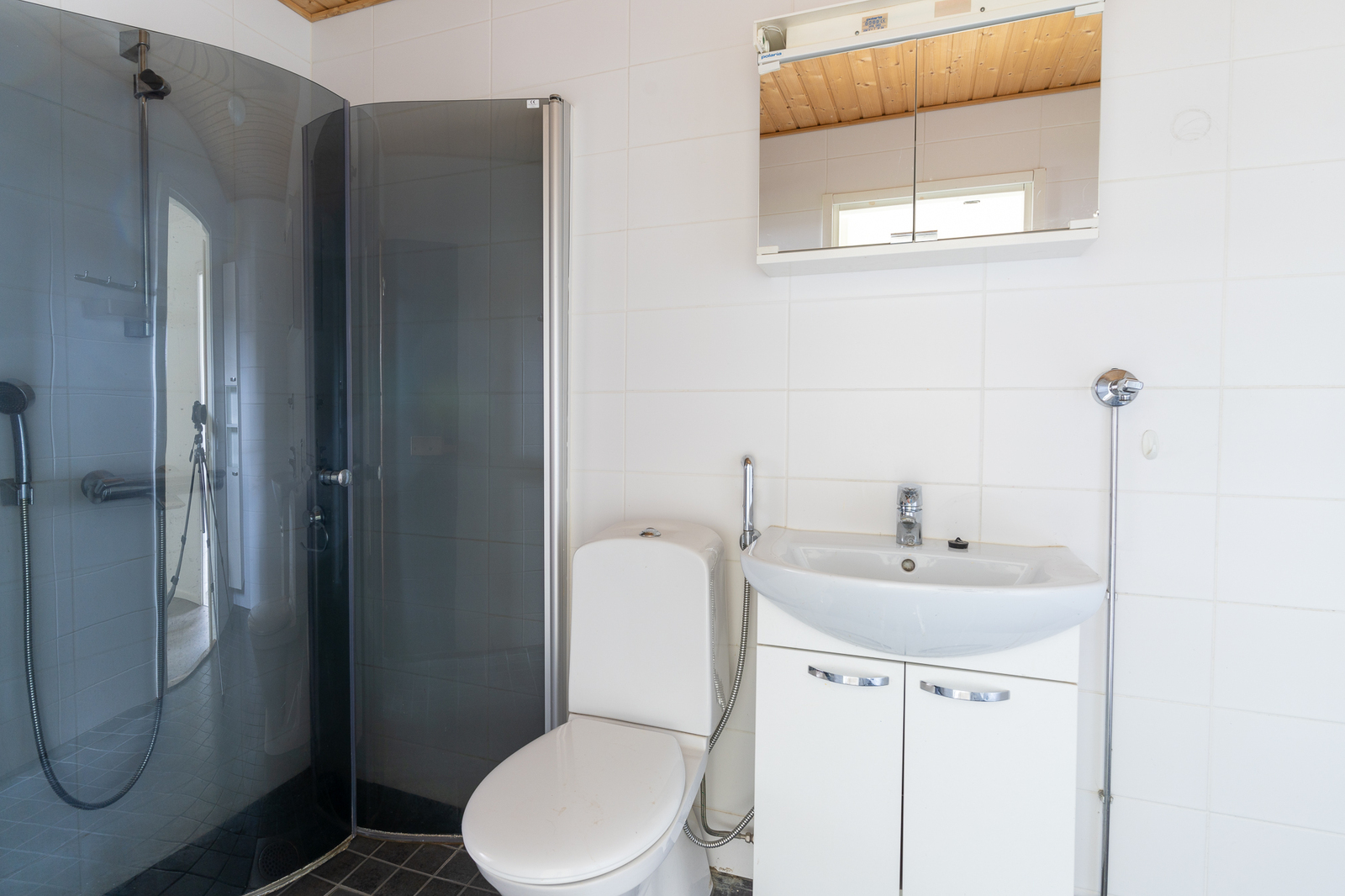 | Kylpyhuoneen kuvaus | Suihkuseinä, pesukoneliitäntä, lattialämmitys, peilikaappi, wc-istuin ja suihku, seinät (kaakeli), lattiat (laatta) |