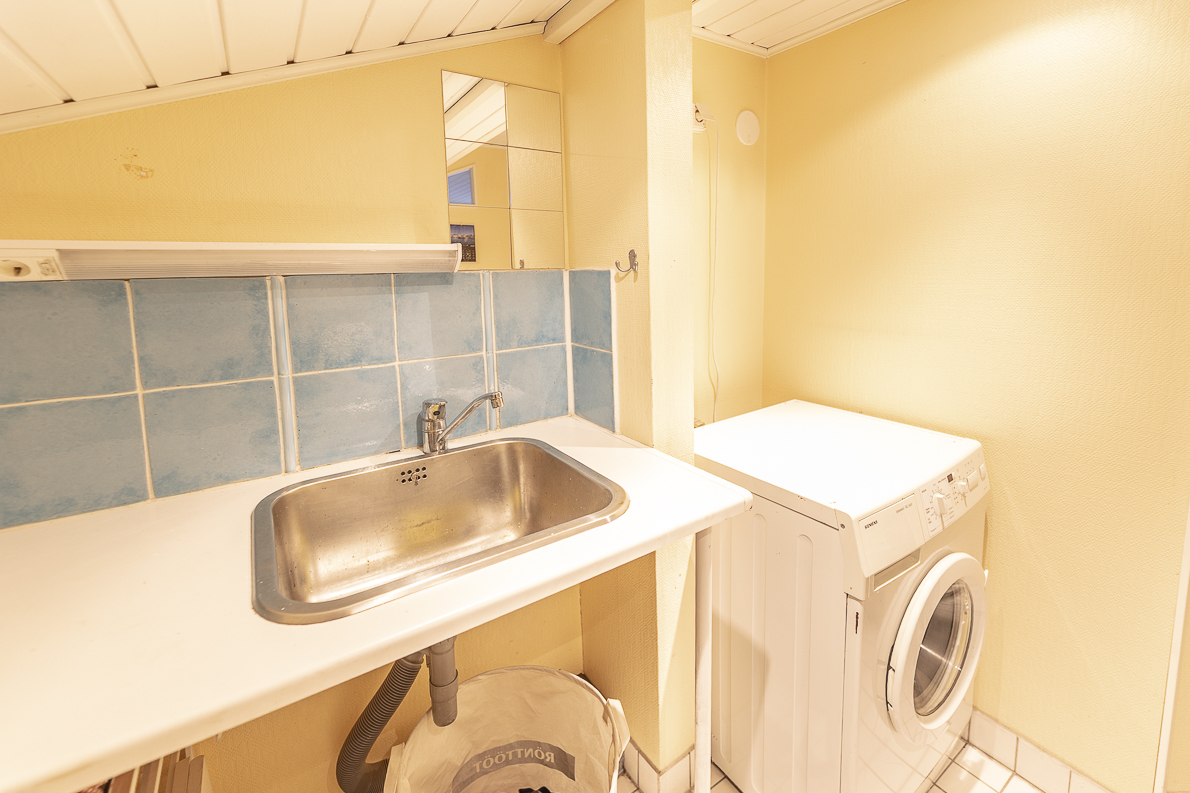 | Kodinhoitohuoneen kuvaus | Pöytätaso, pesuallas, lattiakaivo ja pesukoneliitäntä, lattiat (laatta), seinät (lasikuitutapetti) |