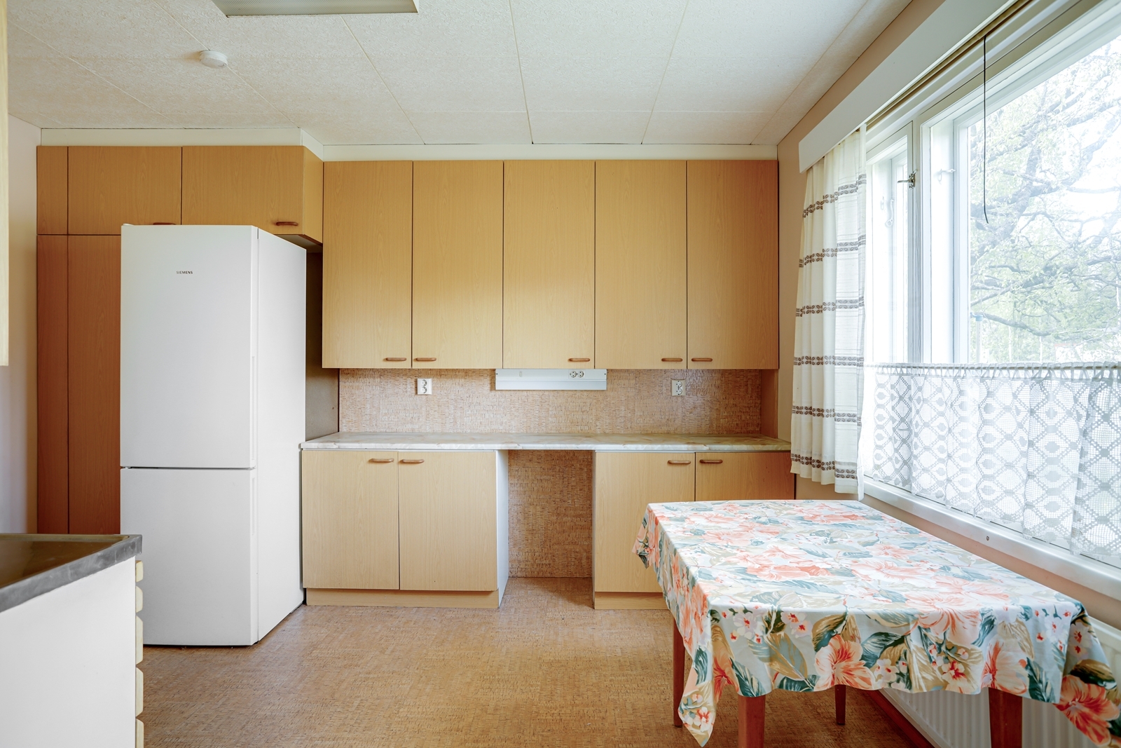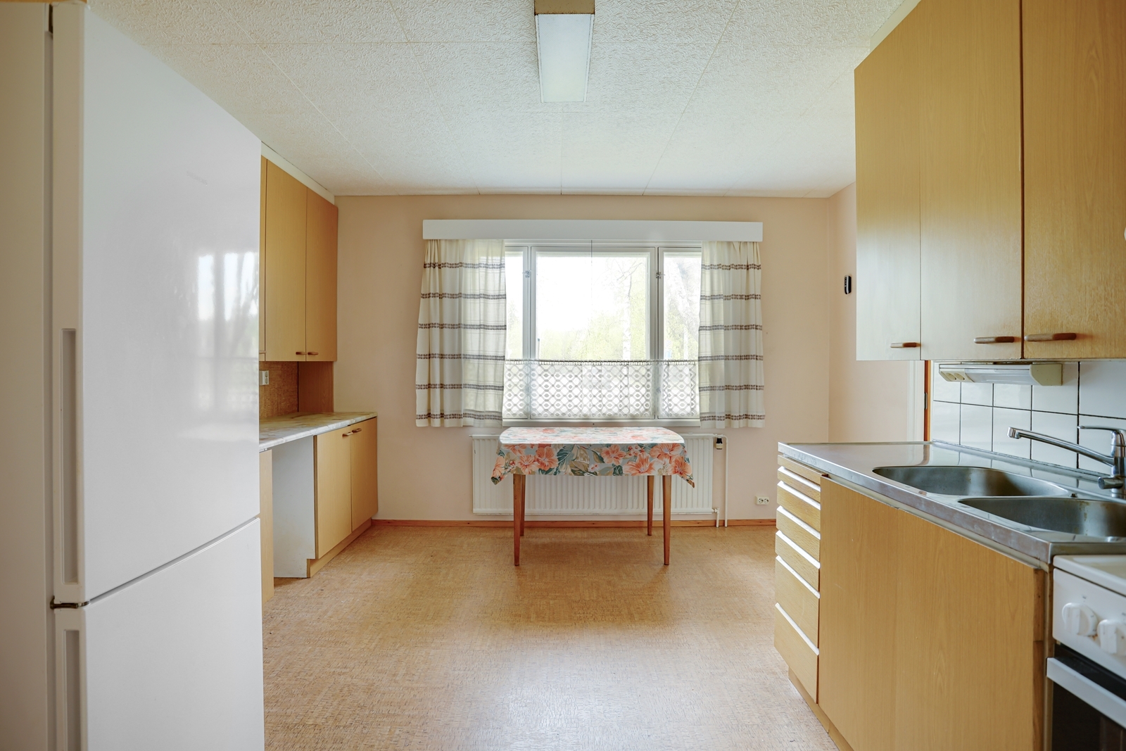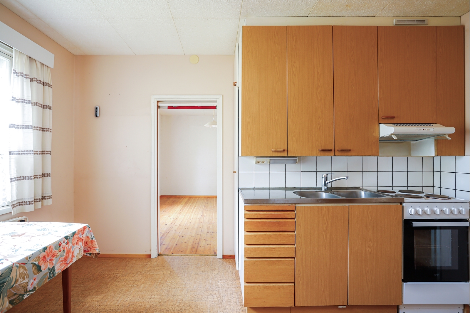 | Keittiön kuvaus | Seinät (maali), lattiat (muovimatto) |