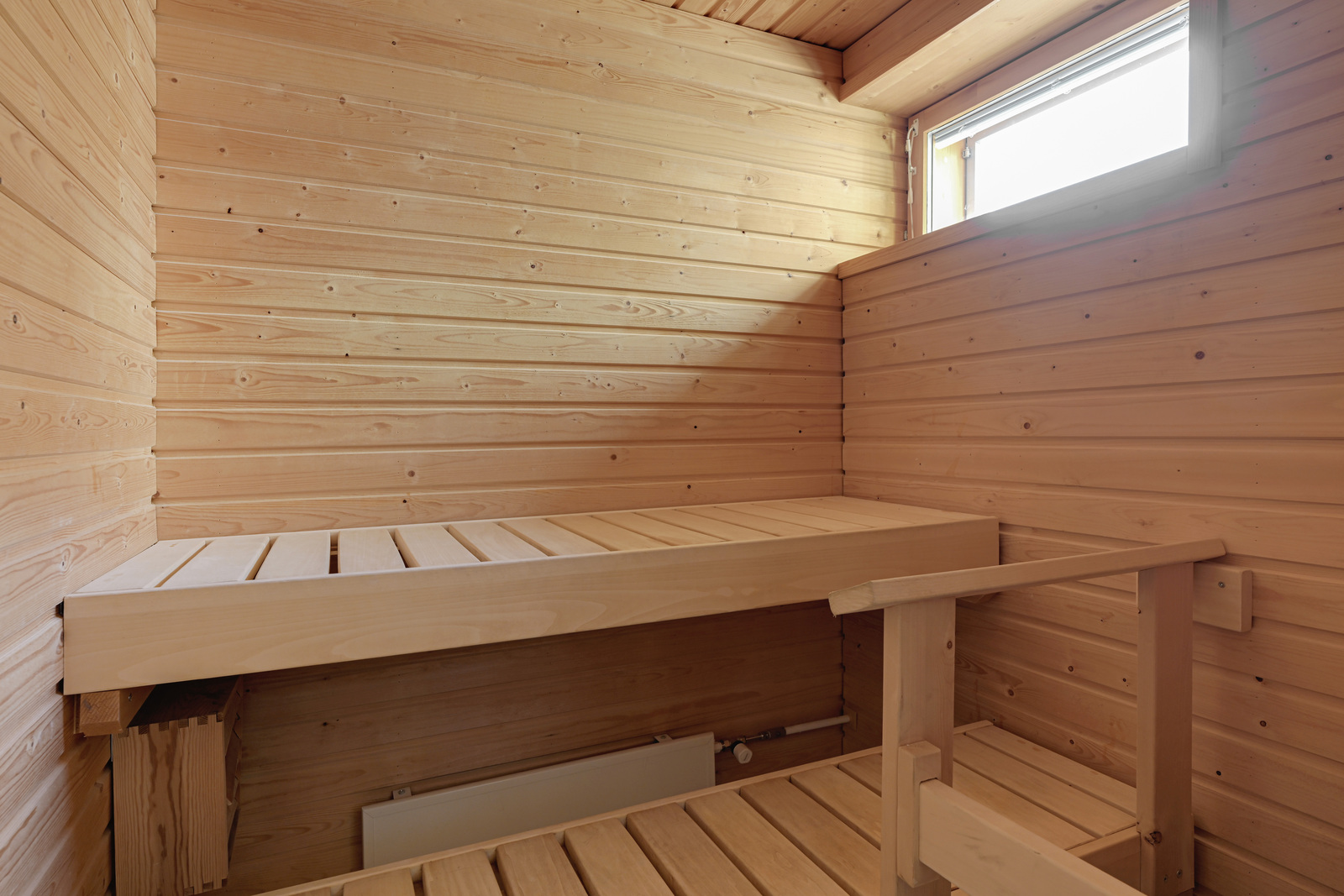 | Saunan kuvaus | Seinät (puu), lattiat (laatta), Sähkökiuas, Saunassa ikkuna länteen. |