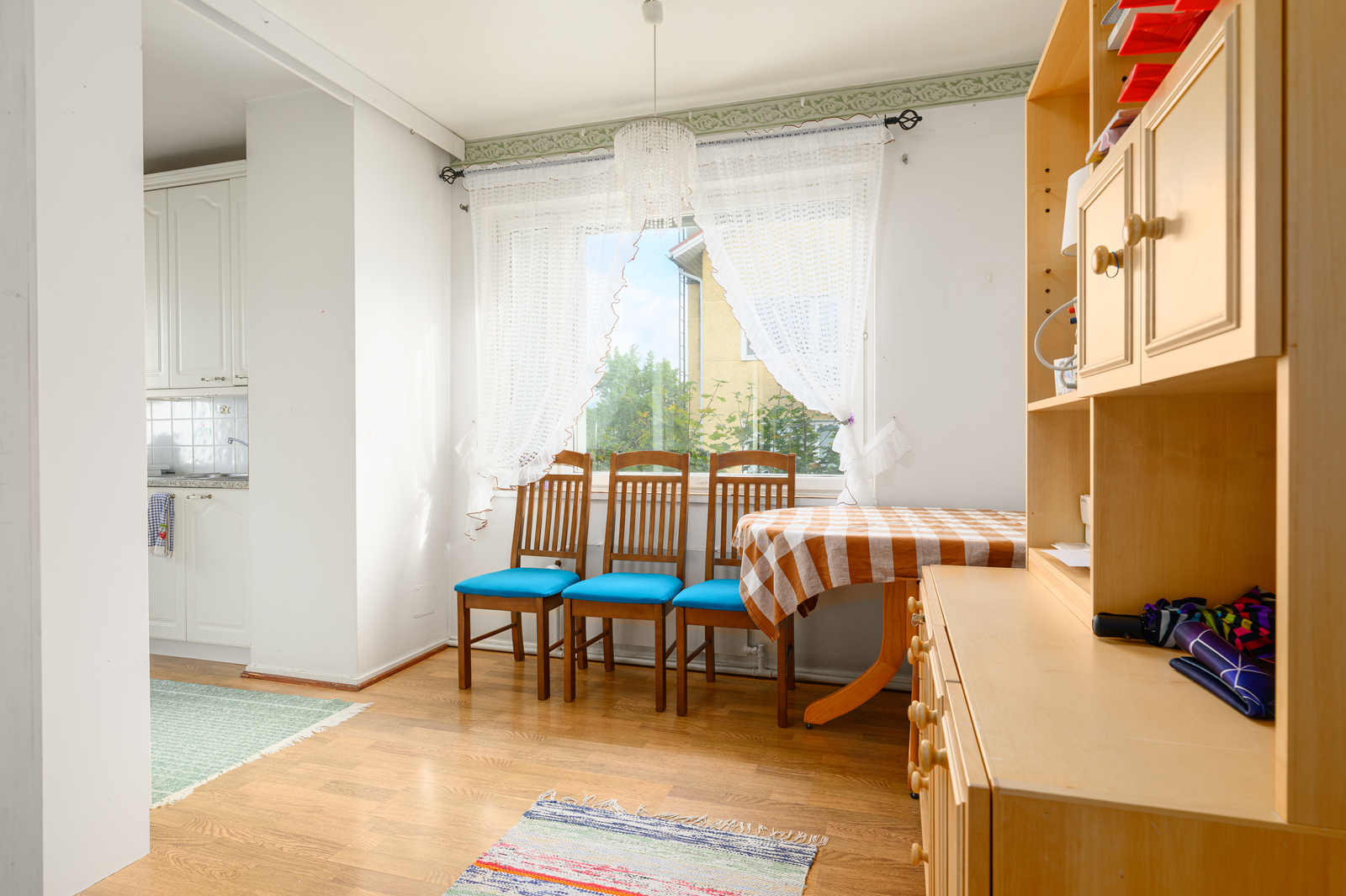 | Seinämateriaalien kuvaus | Koko asunnossa tapetoidut siistit seinät. |