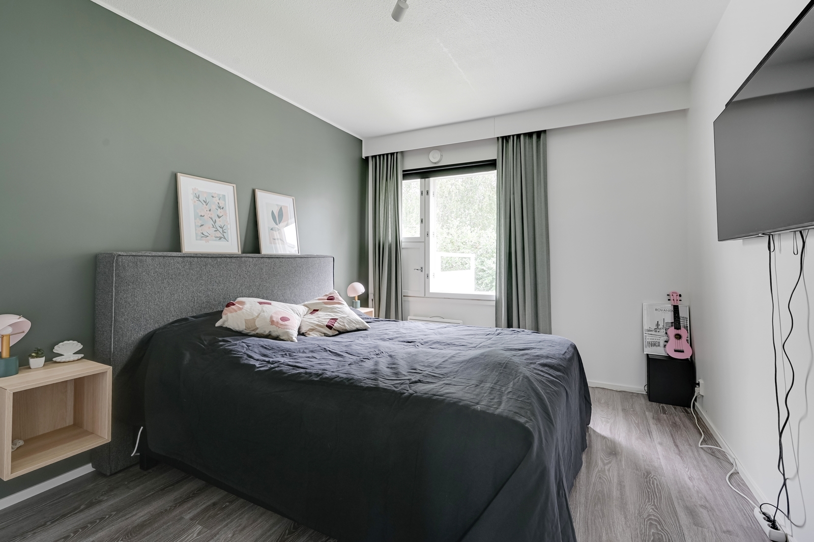 | Tehdyt remontit | Koko asunto remontoitu vuosien 2021 ja 2022 aikana. Keittiön väliseinät purettu, keittiön kaapistot uusittu, pesuhuone uusittu (uusittu myös lämminvesivaraaja ja kalusteet), lattialaminaatit asennettu, ilmalämpöpumppu asennettu, kaikki seinät maalattu/tapetoitu, saunan lauteet ja kiuas uusittu. Takaterassin laudat uusittu 2023. Asunnon huippuimuri vaihdettu ja asennettu korvausilmaventtiilit 2024. Takapihan toinen väliaita uusittu yhtiön toimesta 2025. |