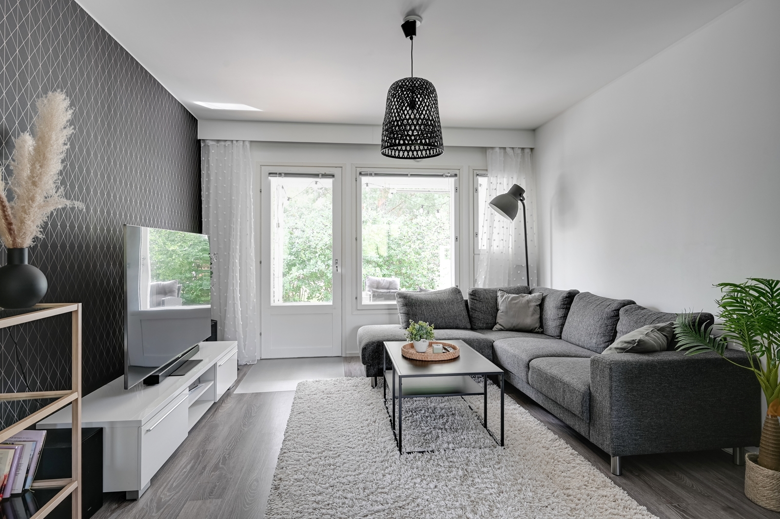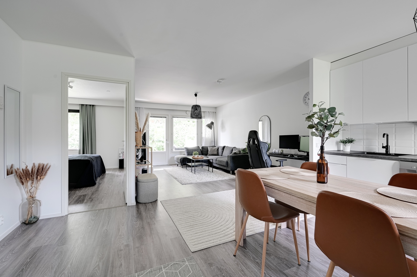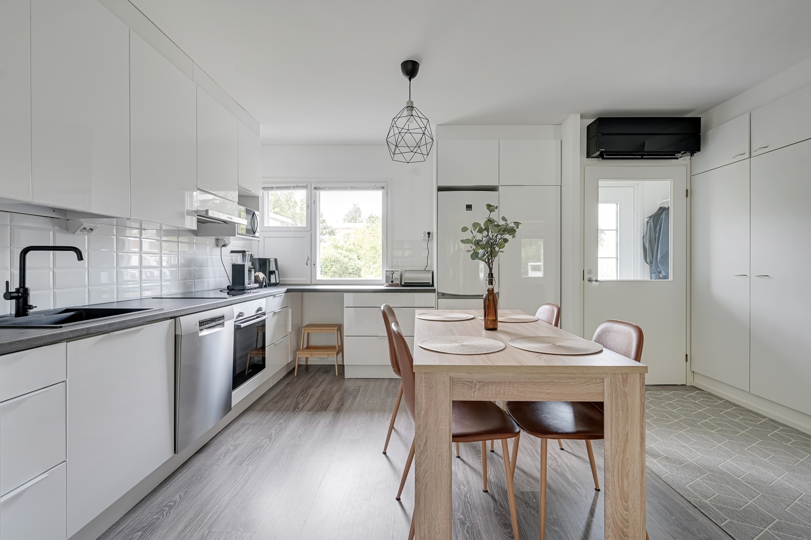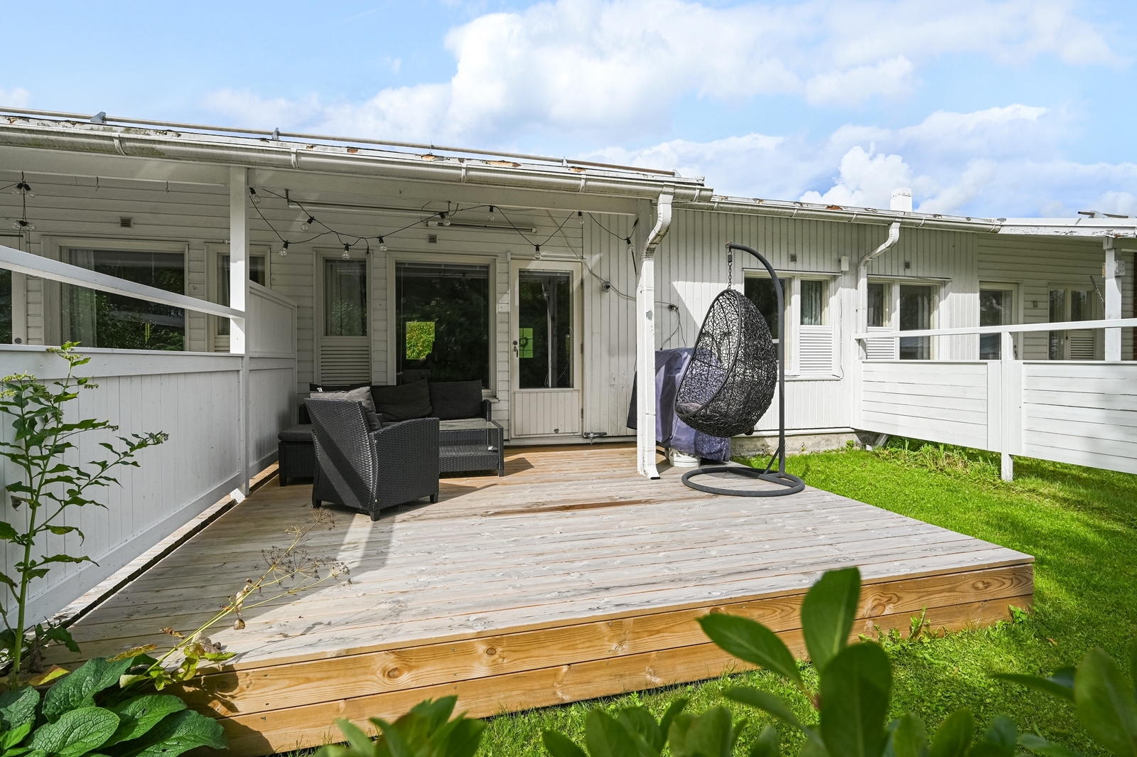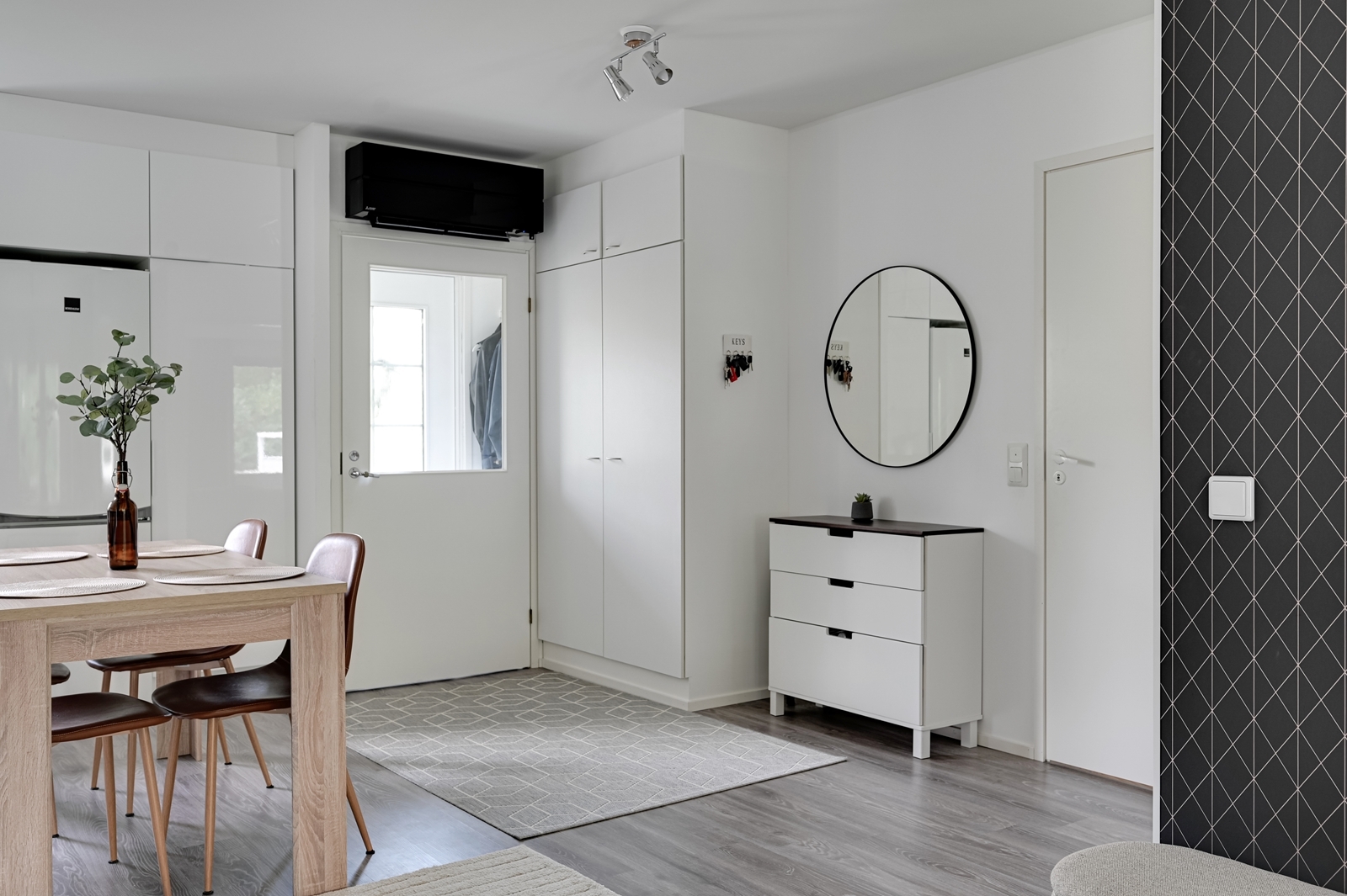 Täysin vuosina 2021/2022 hyvällä maulla remontoitu asunto jolla oma takapiha tilavalla terassilla.