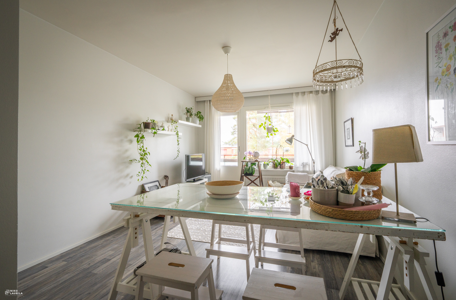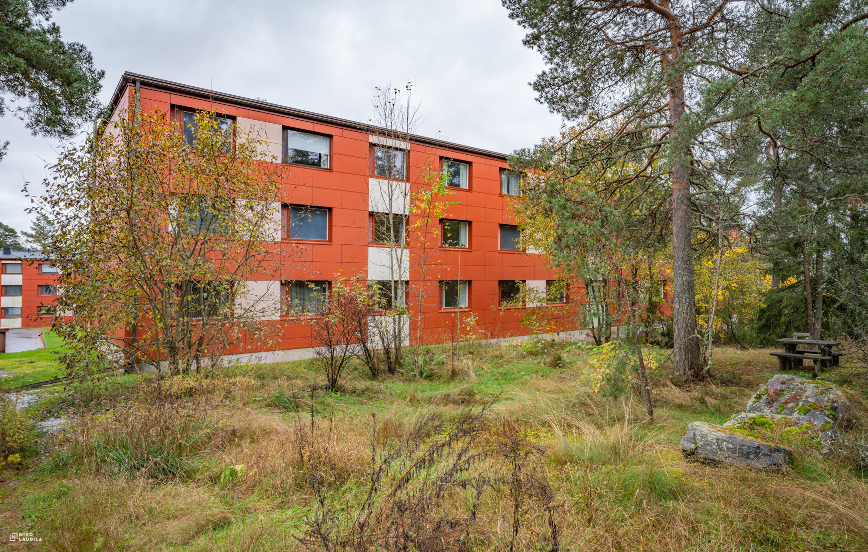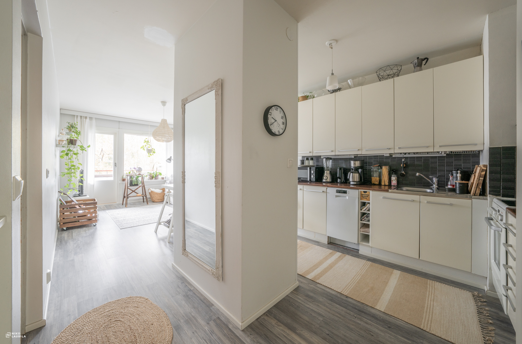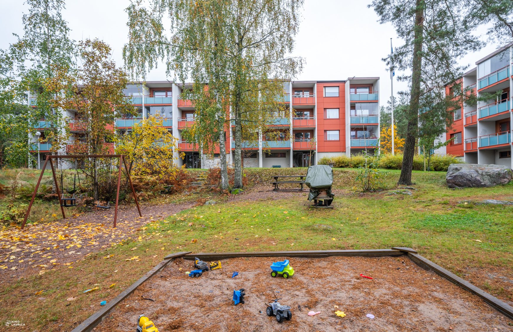 Eestinmäessä mukava pienehkö kolmio nyt tarjolla, kaksi makuuhuonetta ja olohuone-keittiökomerokokonaisuus, josta käynti lasitetulle parvekkeelle etelän suuntaan. Tilava eteinen, josta tietty myös käynti kylpyhuoneeseen. Ruokakauppa lähellä, kuten myös pizzeria ja jumppasali. Paikallisliikenteen pysäkille muutama sata metriä, päiväkoti kävelymatkan päässä. Myös Helsingissä työssäkäyville linja-autopysäkki lähellä. Tilaa oma esittely asap, tervetuloa!