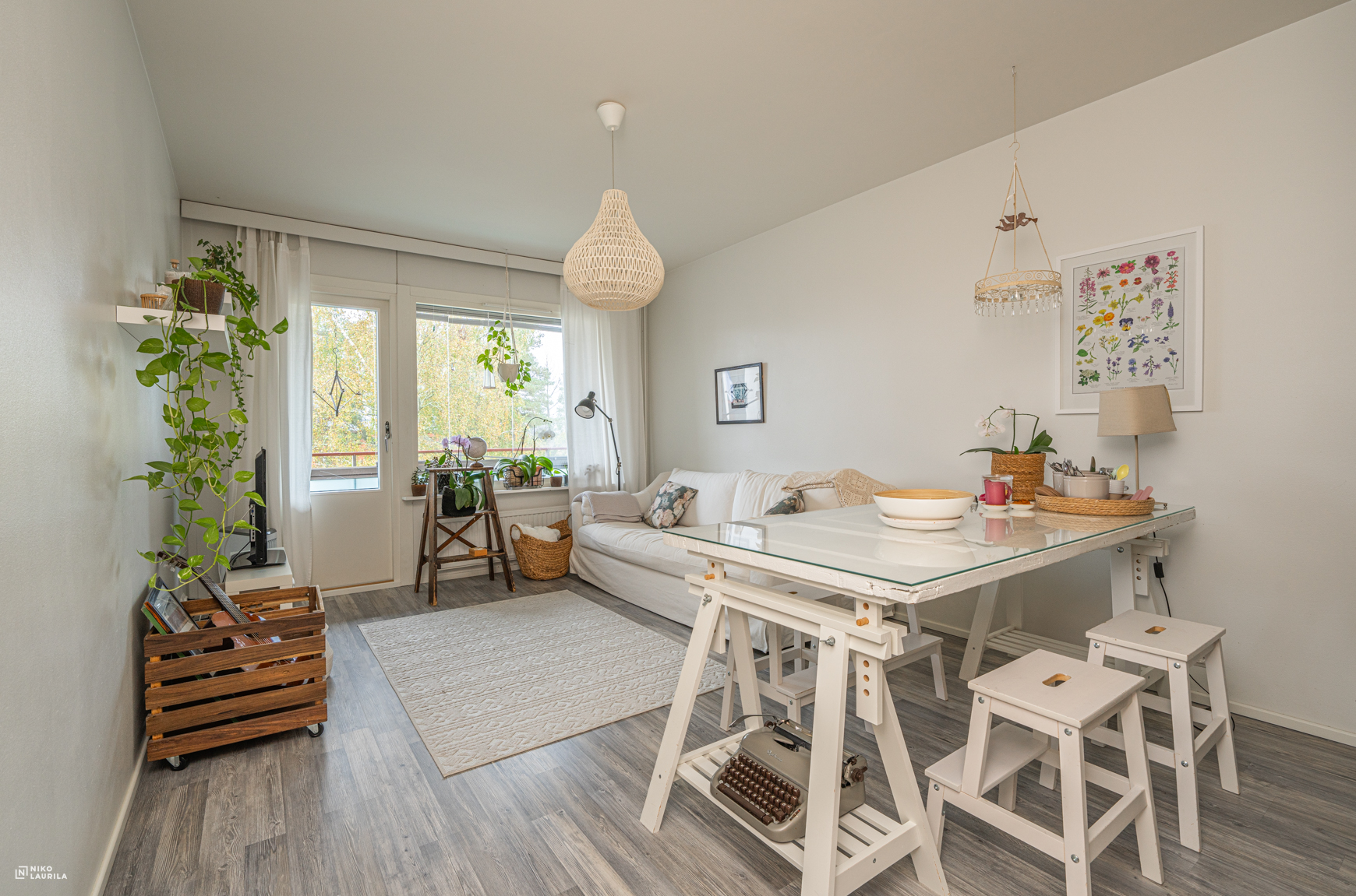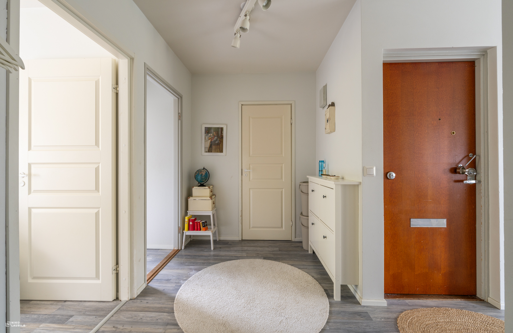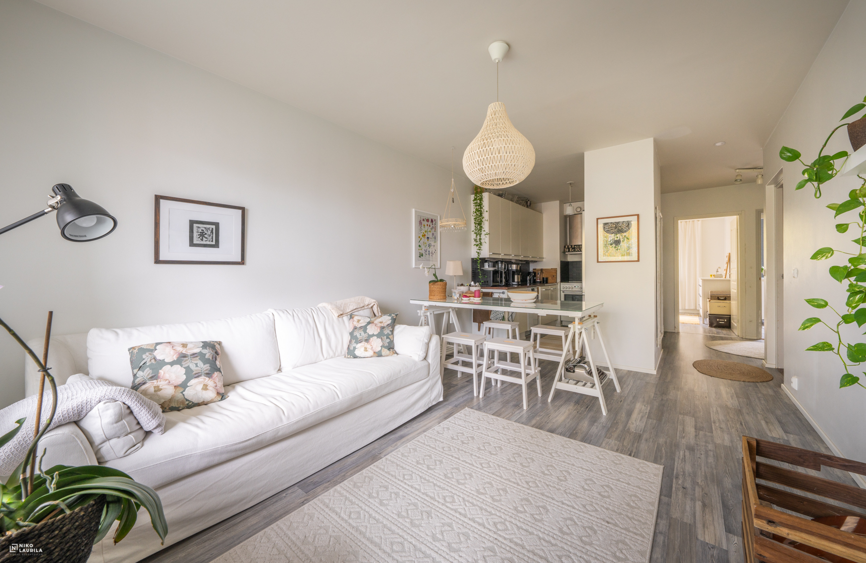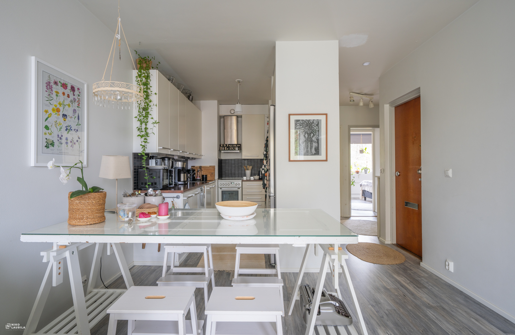 Eestinmäessä mukava pienehkö kolmio nyt tarjolla, kaksi makuuhuonetta ja olohuone-keittiökomerokokonaisuus, josta käynti lasitetulle parvekkeelle etelän suuntaan. Tilava eteinen, josta tietty myös käynti kylpyhuoneeseen. Ruokakauppa lähellä, kuten myös pizzeria ja jumppasali. Paikallisliikenteen pysäkille muutama sata metriä, päiväkoti kävelymatkan päässä. Myös Helsingissä työssäkäyville linja-autopysäkki lähellä. Tilaa oma esittely asap, tervetuloa!