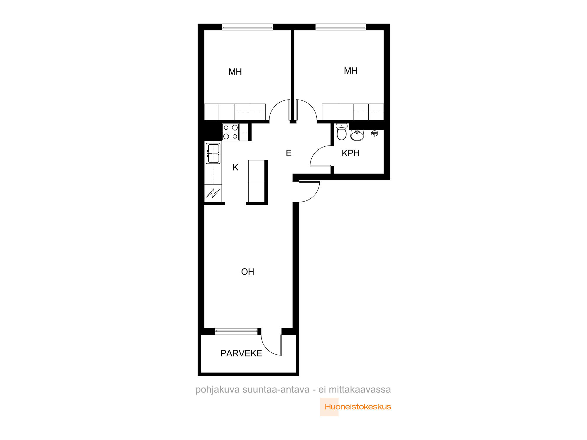 2 mh, oh, kk, kph, et, lasit. parveke |