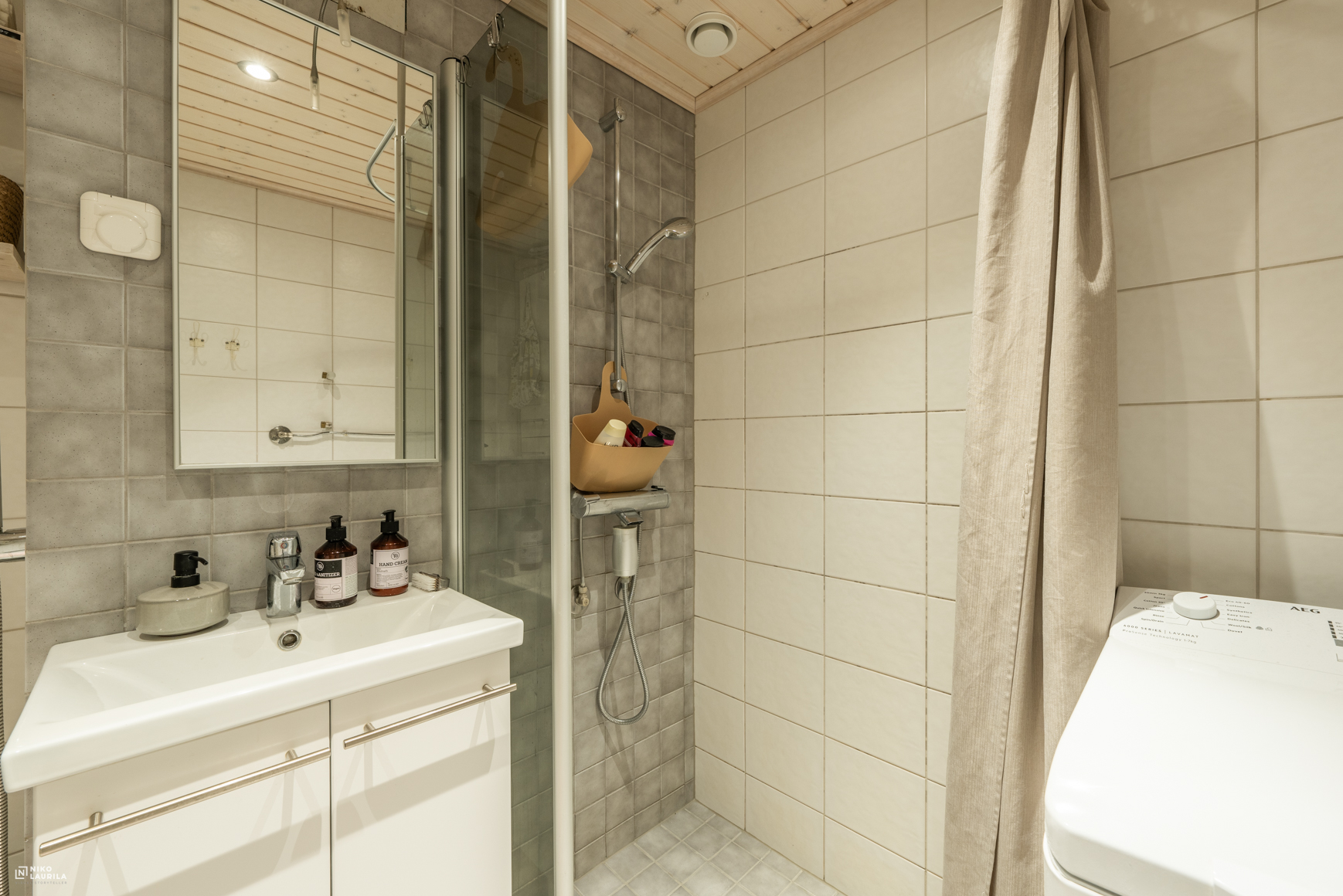 Kävelymatkan päässä M-market, pizzeria sekä jumppasali. |