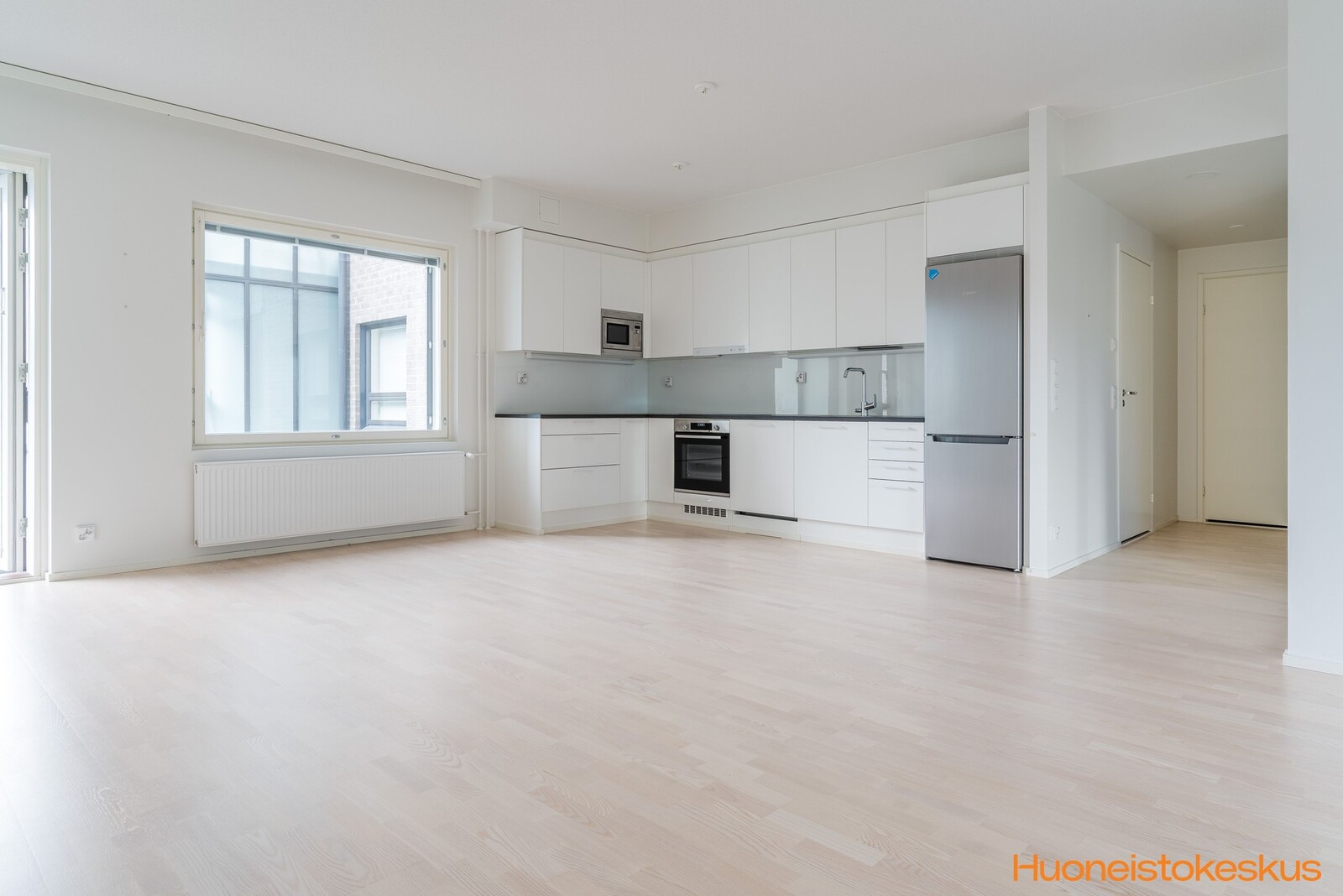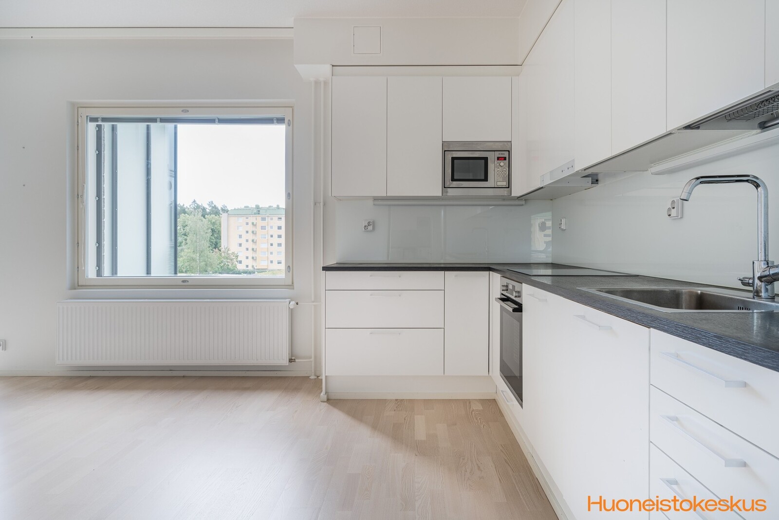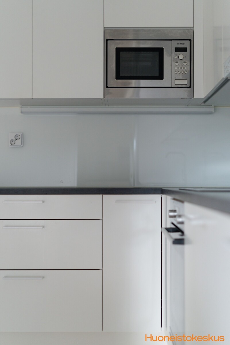 | Keittiön kuvaus | Liesi (Induktioliesi ja erillisuuni), työtasot (laminaatti), seinät (maali), lattiat (parketti), liesi, jääkaappipakastin, liesituuletin, astianpesukone, erillisuuni, mikroaaltouuni ja kiinteät valaisimet |
