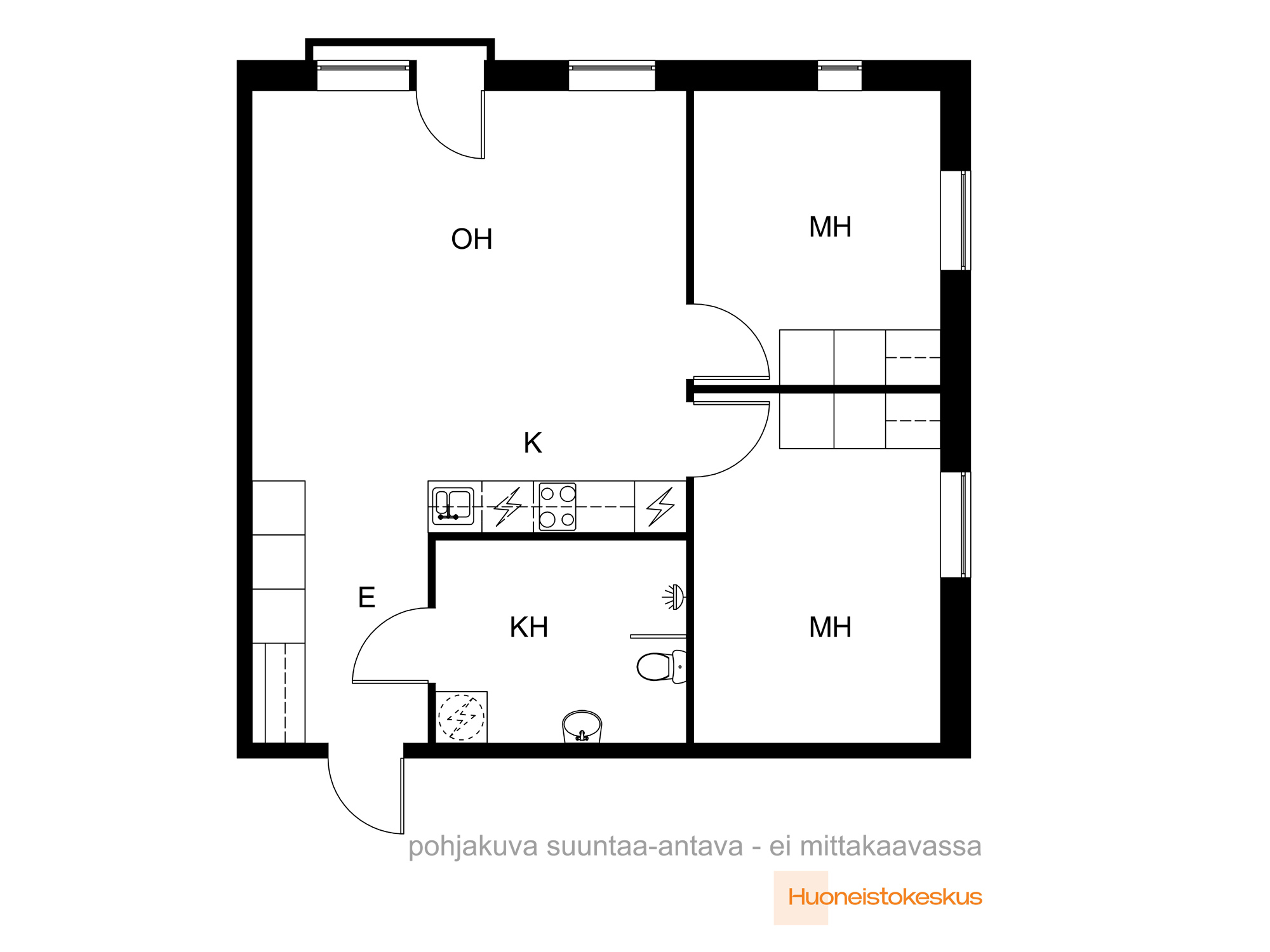 Avokeittiö-olohuoneyhdistelmä on avaran valoisa ja tuo asuntoon paljon tilan tuntua, makuuhuoneet ovat kohtalaisen kokoiset ja kylpyhuoneeseen mahtuu hienosti kaikki tarpeellinen. Kaappitilaa on molemmissa makuuhuoneissa ja eteisessä, ja lisäksi on todella iso lämmin irtaimistovarasto.