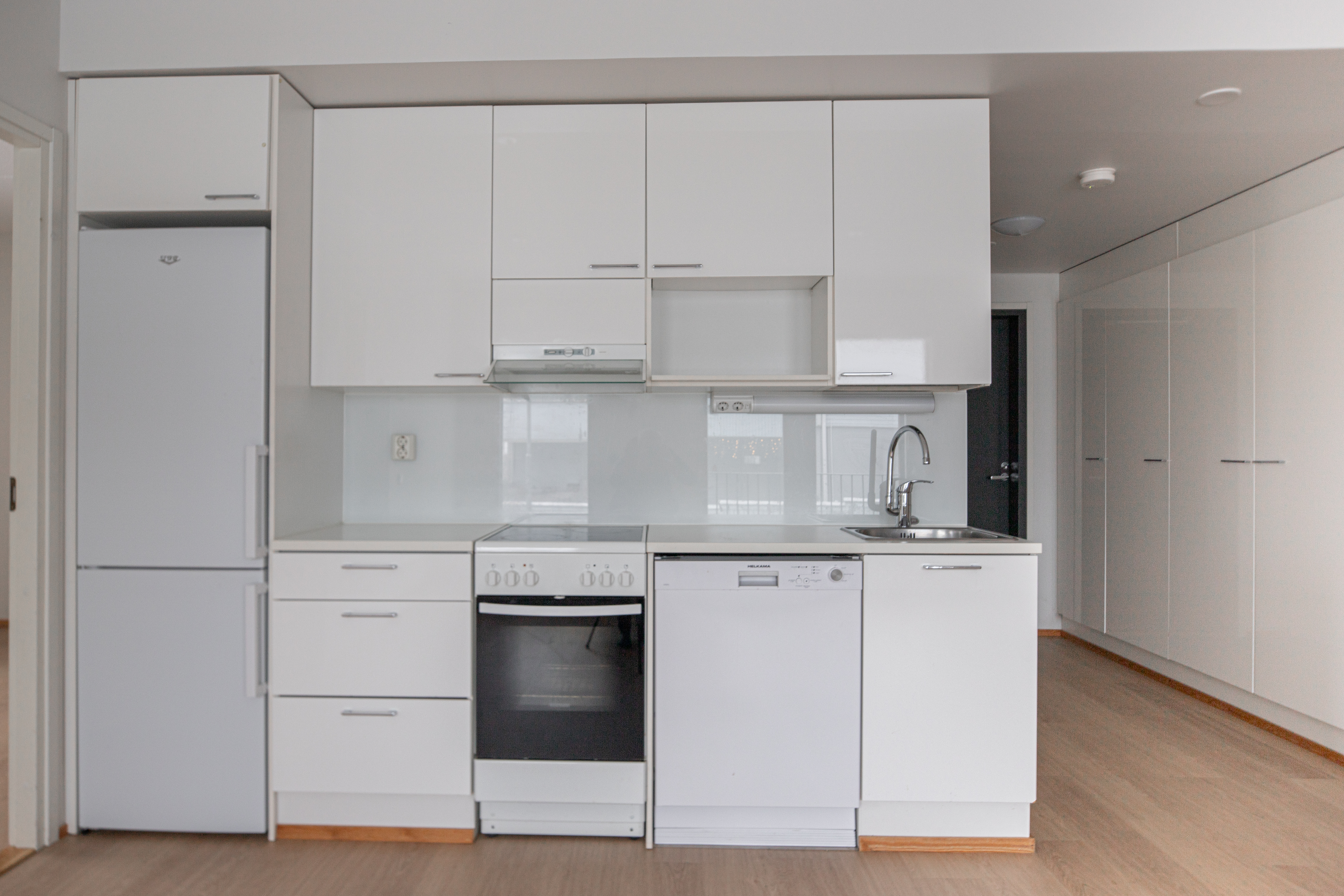 | Keittiön kuvaus | Liesi (Keraaminen liesi), työtasot (laminaatti), seinät (maali), lattiat (laminaatti), jääkaappipakastin, liesituuletin ja astianpesukone |