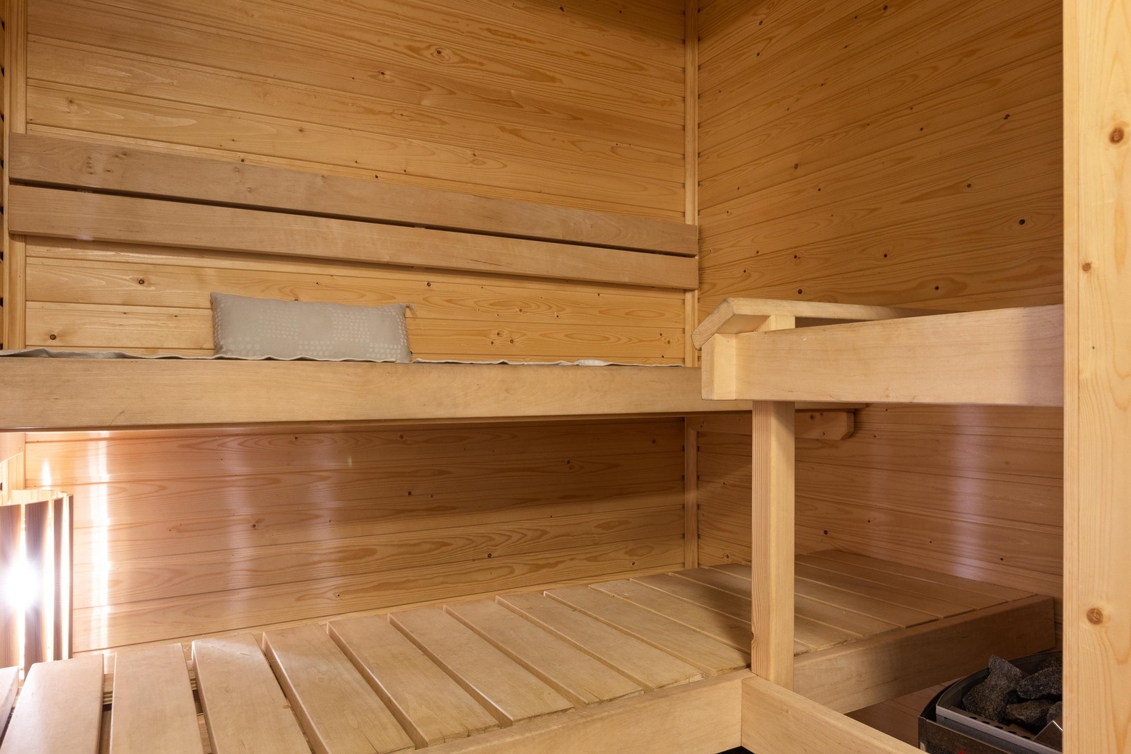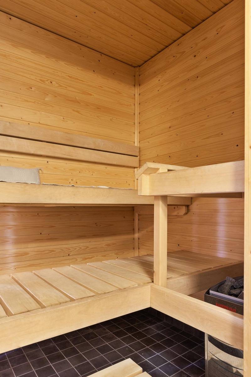 | Saunan kuvaus | Seinät (puu), lattiat (laatta), Sähkökiuas |