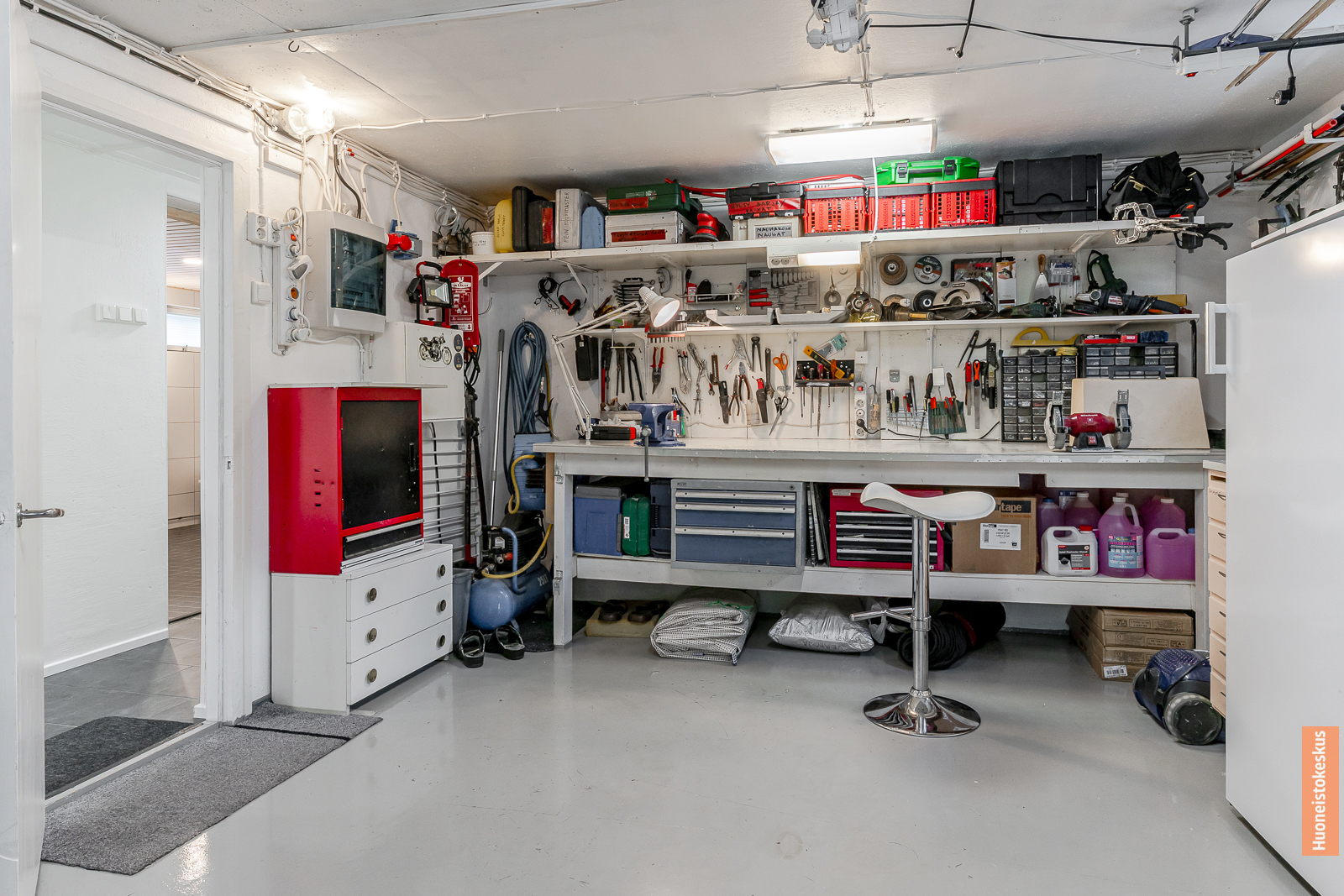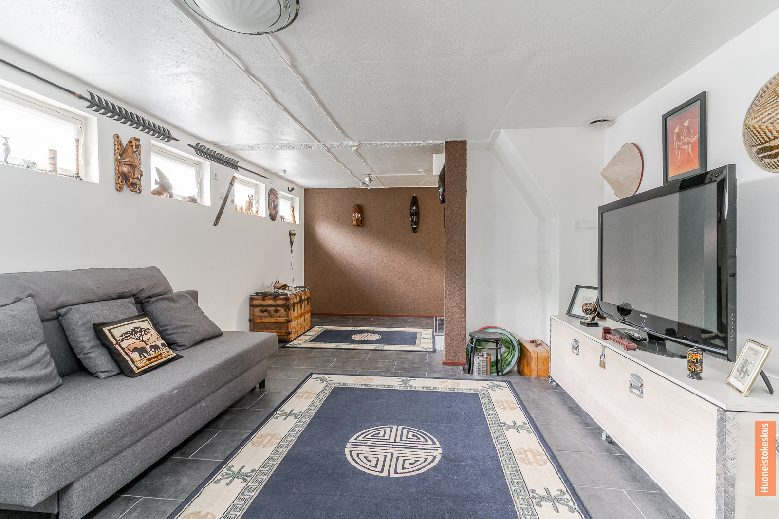 Alakerta tarjoaa arjen luksusta ja runsaasti tilaa: viihtyisä takkahuone, tyylikäs kylpyhuone, sauna, erillinen kodinhoitotila sekä askarteluhuone tarjoavat monipuoliset käyttömahdollisuudet. Lisäksi alakerrasta löytyvät tekniset tilat, jotka tukevat sujuvaa arkea.