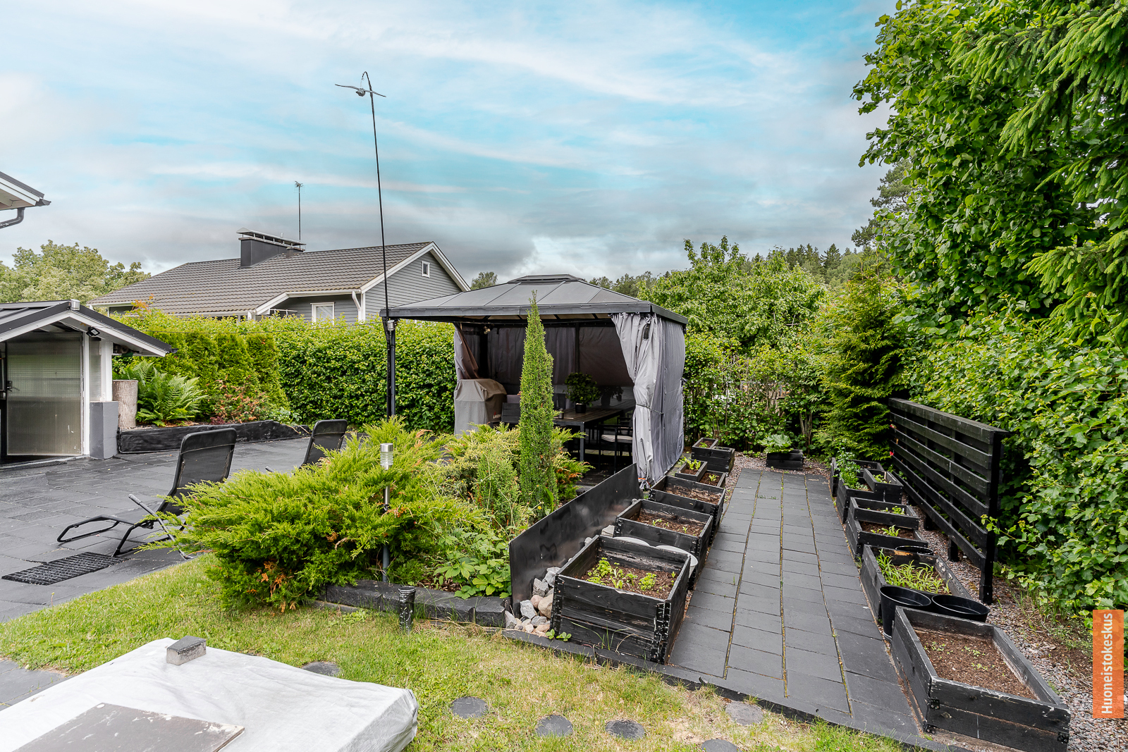 Tontti on oma, kooltaan 595 m², ja sen suojaisa ja hyvin hoidettu piha kutsuu viihtymään. Kesäkeittiö luo loistavat puitteet ulkoelämälle, ruokailuun ja yhdessäoloon lämpiminä kuukausina.