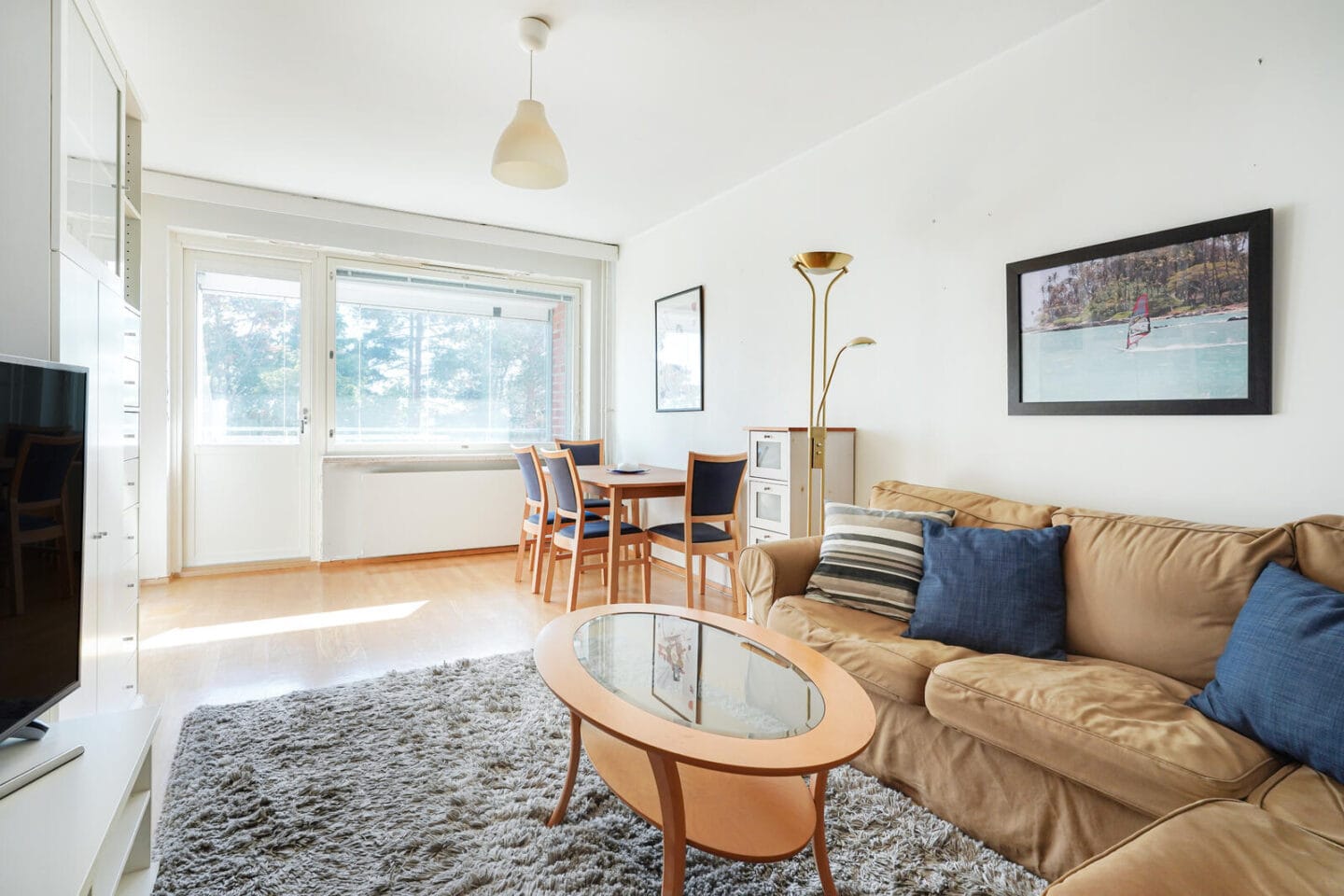 Olohuone on todella tilava ja sen yhteydessä on lasitettu parveke etelään takapihalle, makuuhuone on hyvänkokoinen ja tilaa on tarvittaessa myös hyvin työpöydälle. Keittiössä on paikka arkiruokapöydälle ja putkiremontin yhteydessä kunnostettuun kylpyhuoneeseen mahtuu oma pyykinpesukone.